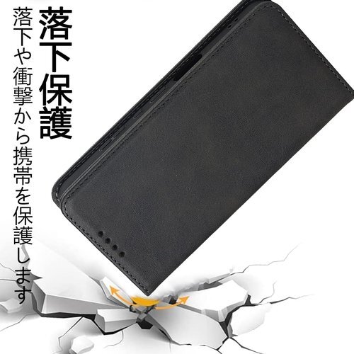 【ポイント②】:マグネット内蔵式のケースです、留め具なしでシンプルなデザイン感をよりアップさせます。表面は手触りの合成レザーです、内部の柔軟なTPUホルダーは衝撃吸収の性能が抜群で、万が一の落下した時、大切なスマホ本体をしっかり守ることができます。