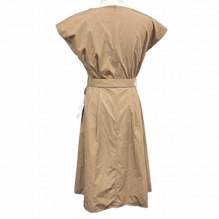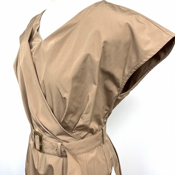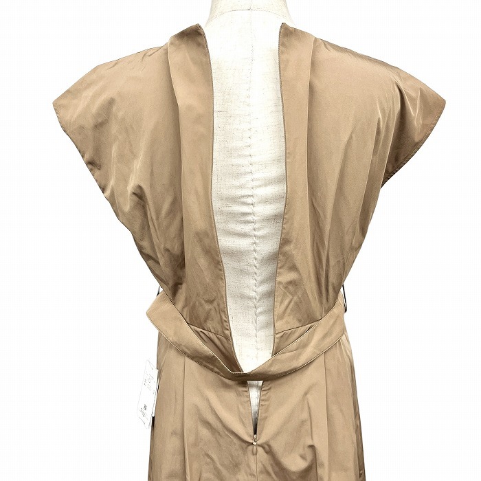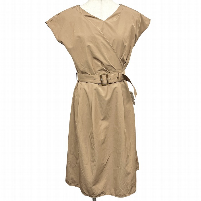 商品タイトル | 【新品】NATURAL BEAUTY BASIC 薄手 ワンピース ロング Vネック カシュクール風 フレンチスリーブ 無地 ポリ×綿 L ベージュ レディース |
