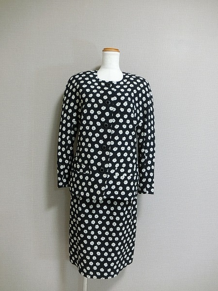 サイズ | 9 ジャケット 肩幅 約ーcm 着丈 約61.5cm 身幅 約44cm 裄丈 約76cm スカート ウエスト 約69cm 総丈 約63cm ※採寸に関しましては、平置きで素人が採寸してますので多少の誤差はご了承下さい。 |