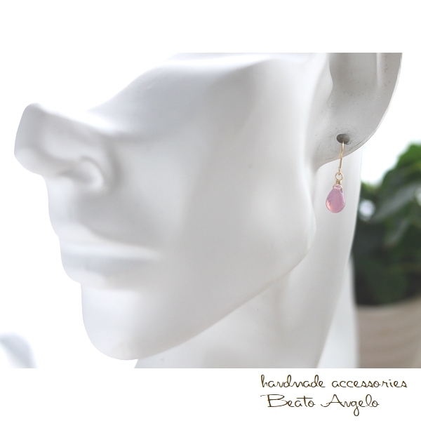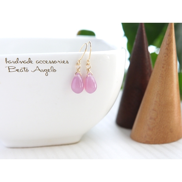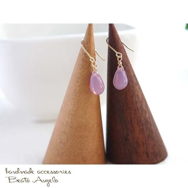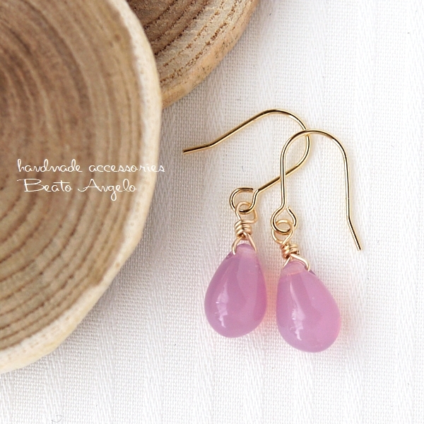 ◇◇+angelo+K14GF チェコドロップのプチピアス(p-509)モーヴピンク 一粒 シンプル チタン 樹脂 イヤリング