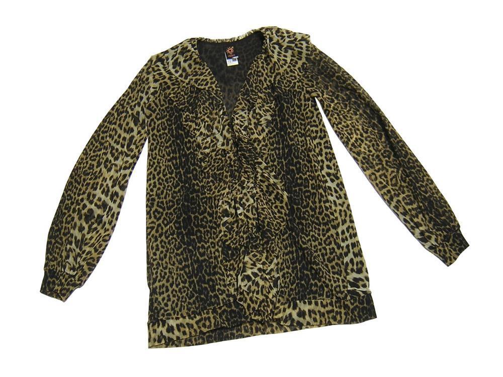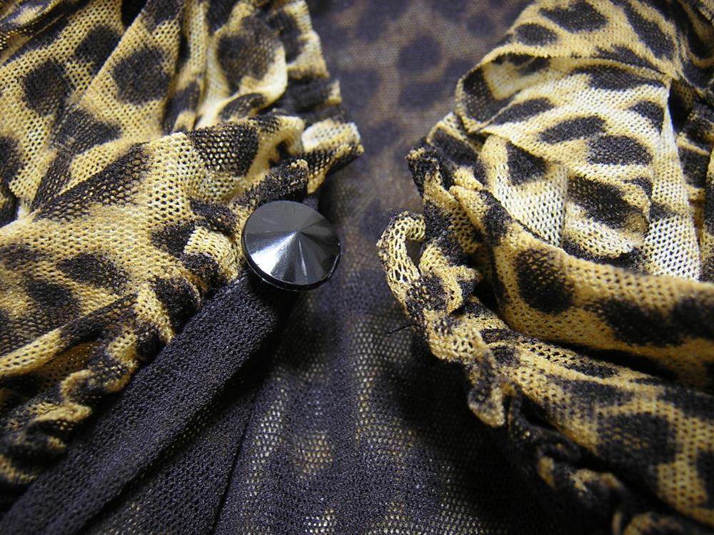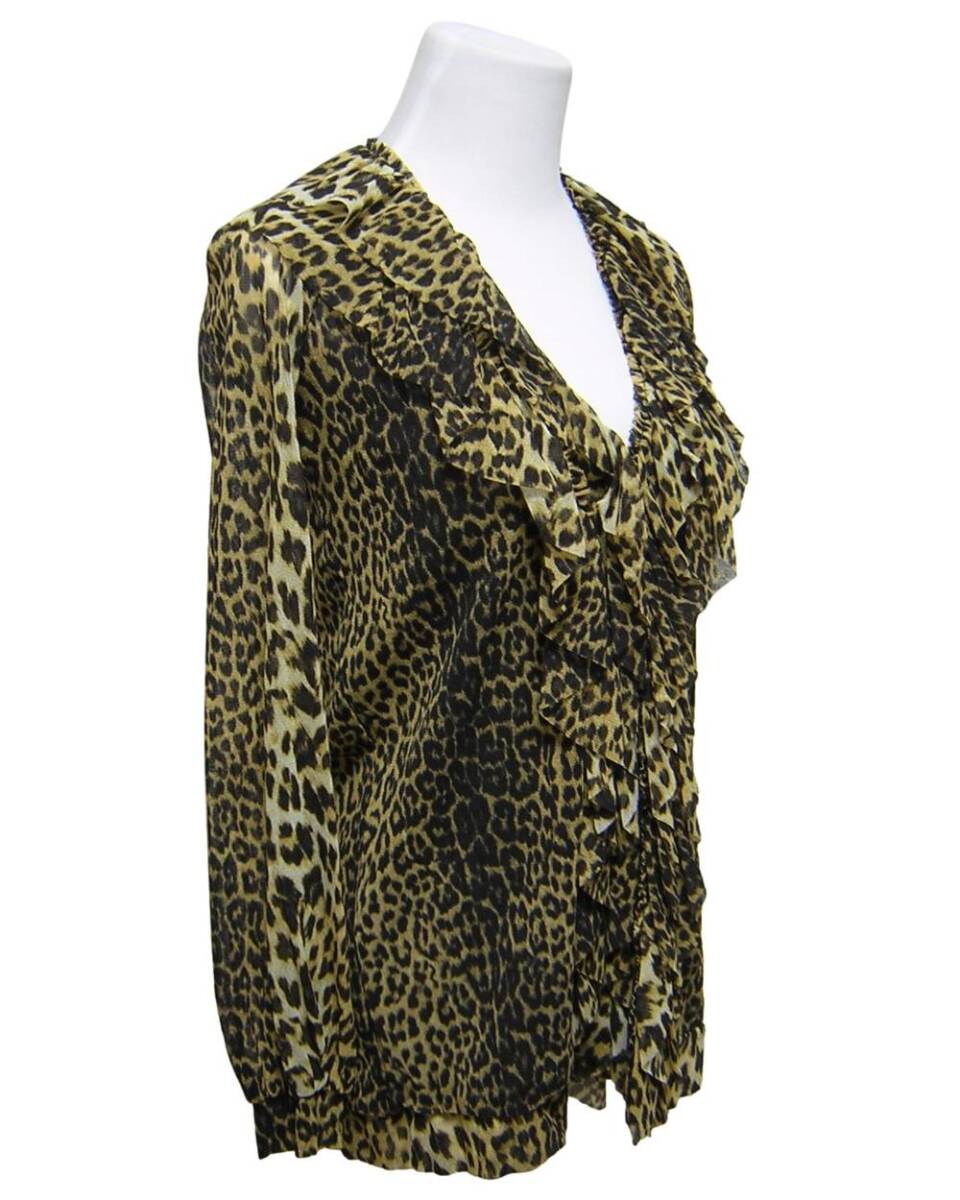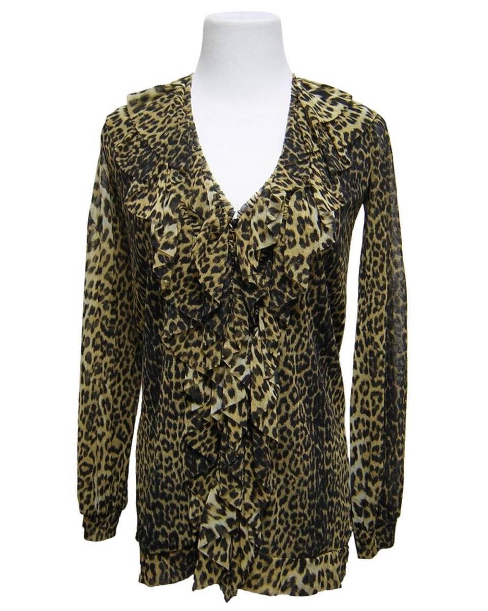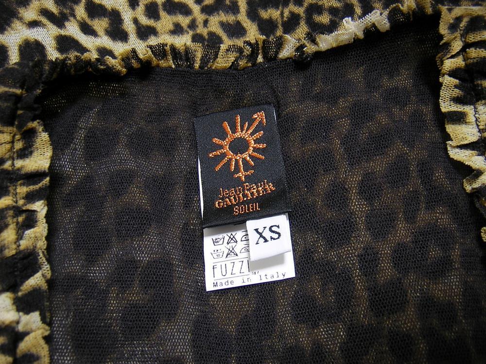 Jean Paul GAULTIER SOLEIL のイタリア製、 レオパード柄ラッフルチュールカーディガンでございます。 伸縮性あり/見頃2枚仕立て/フロント2箇所留め | |