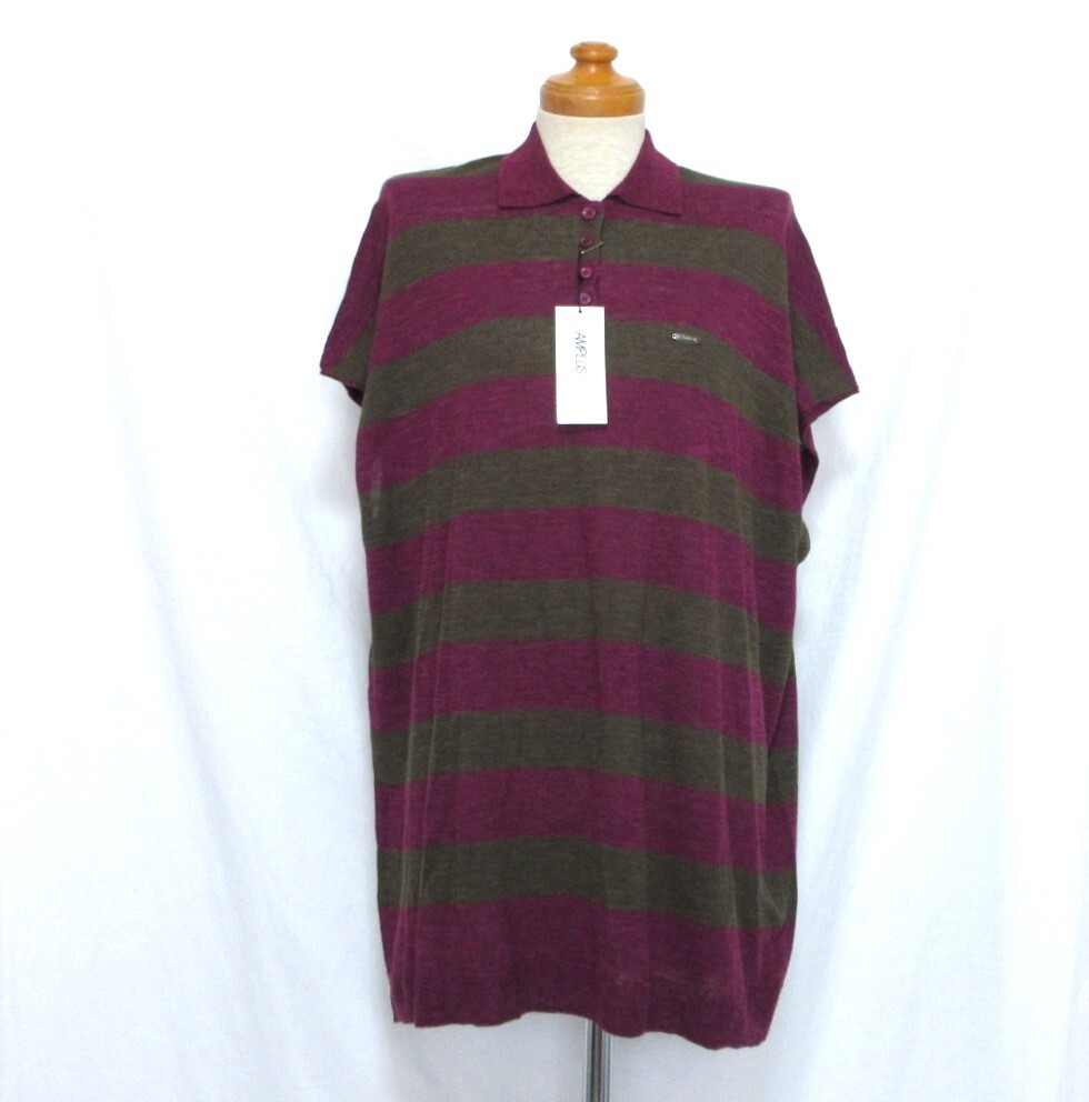 パープルとカーキカラーのボーダーがシックで素敵な1枚です。 | ||