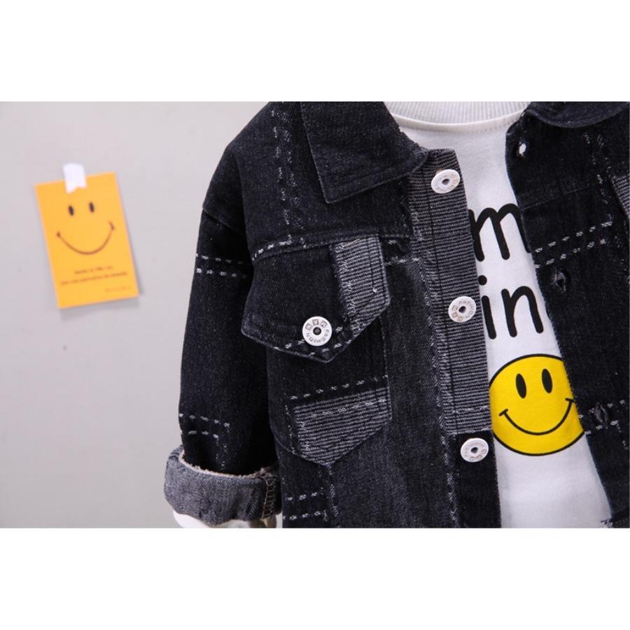 | 商品名 | ブラック 90cm 3点セット セットアップ パッチワークデニム 上下セット Gジャン ジーパン 長袖Tシャツ キッズベビー服 韓国子供服 |
