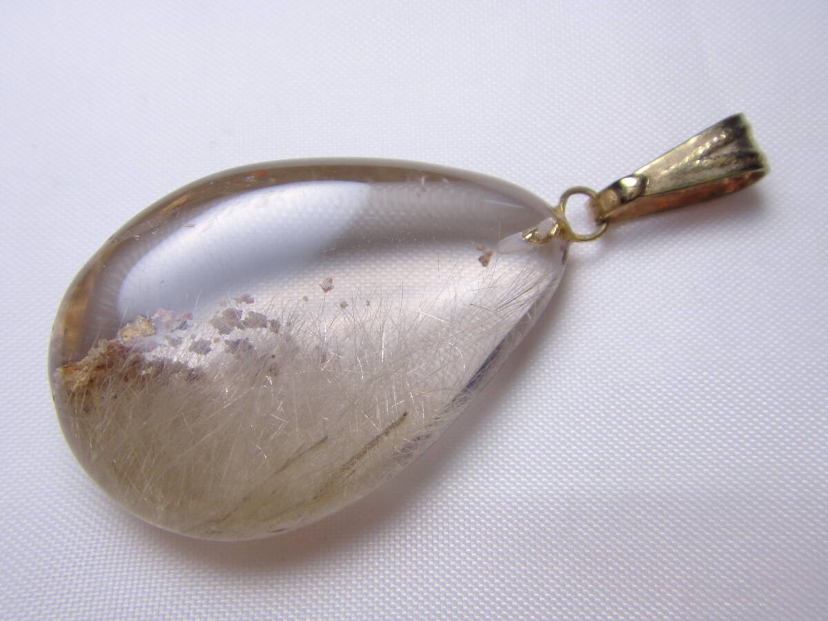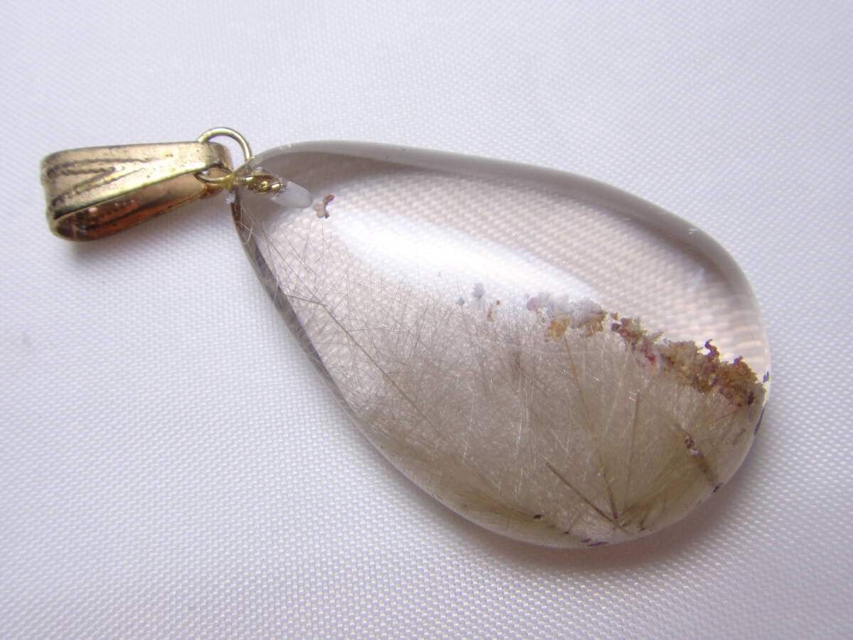 天然石 ルチルクォーツ ネックレストップ チャーム 高透明! 高品質 綺麗な景色! ヴィンテージ アクセサリー作りなどにも C171