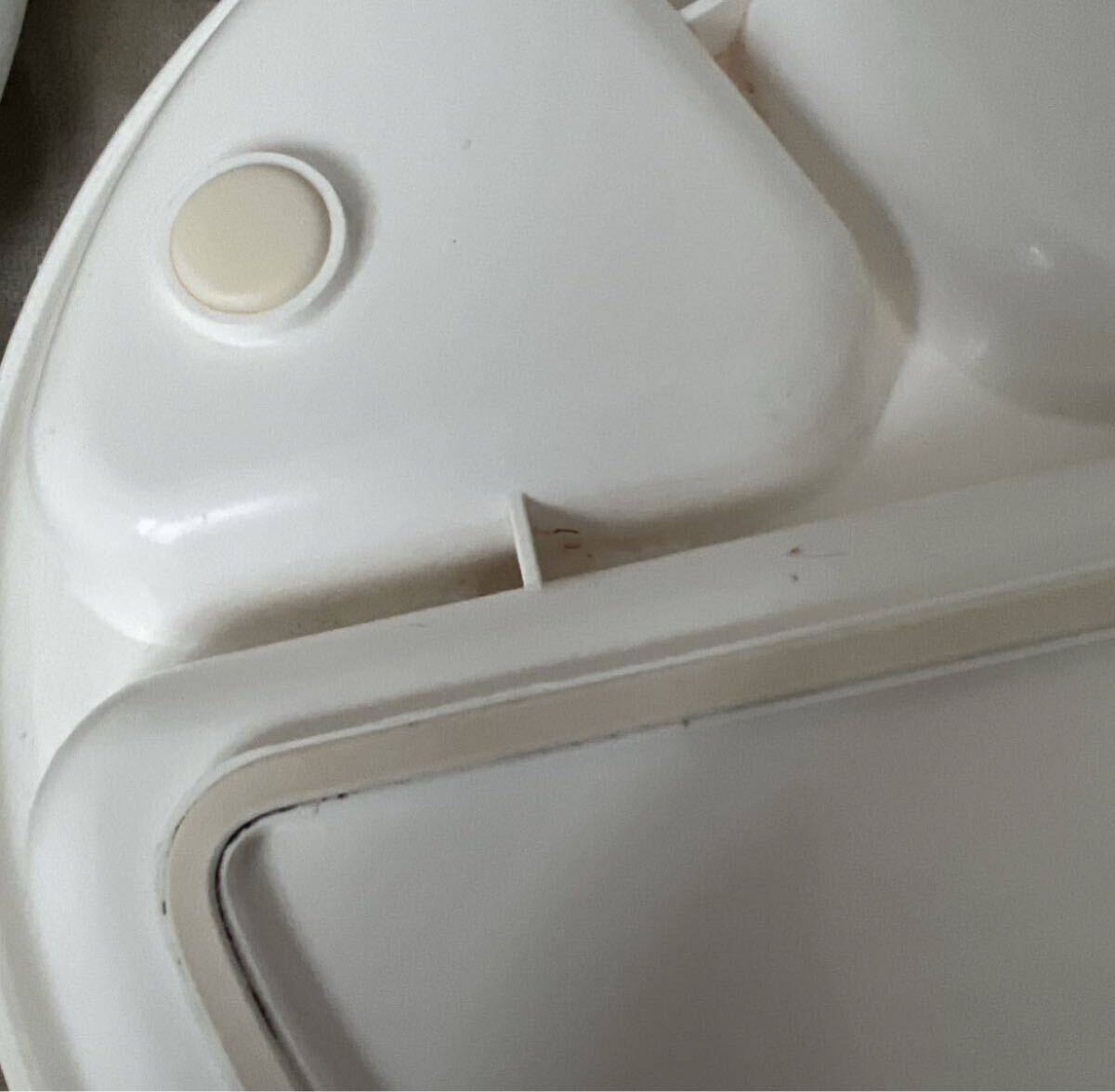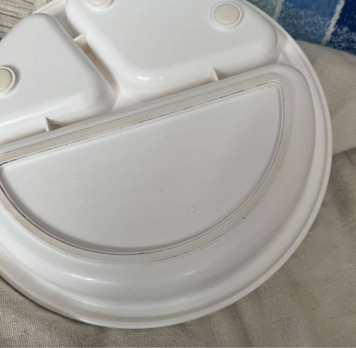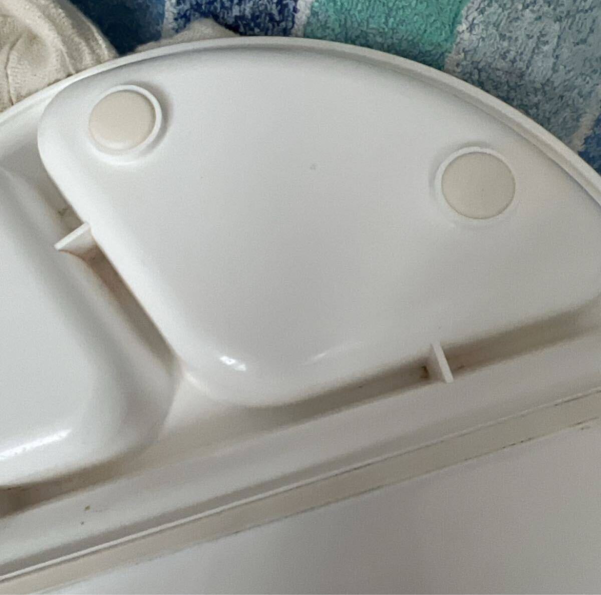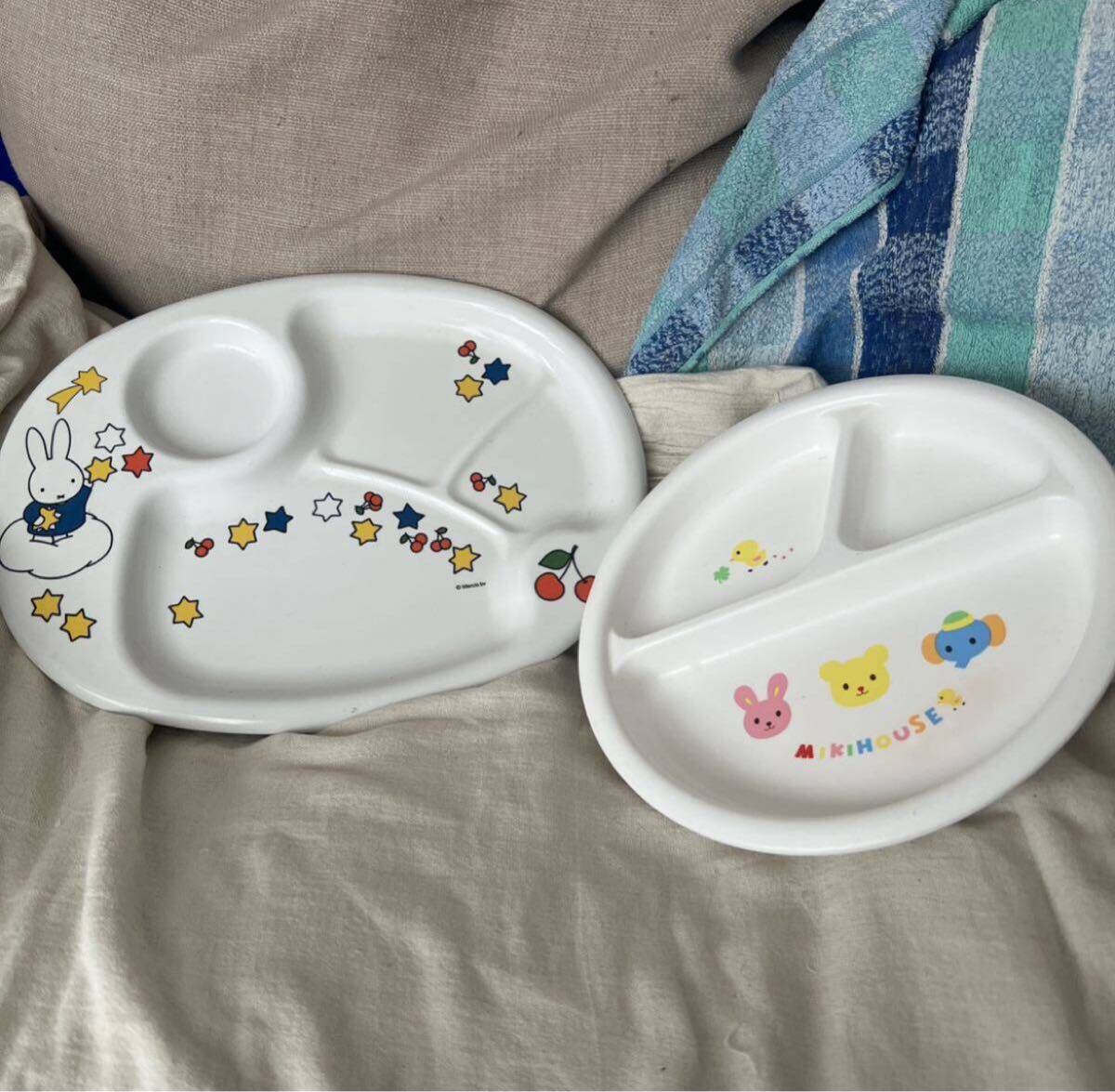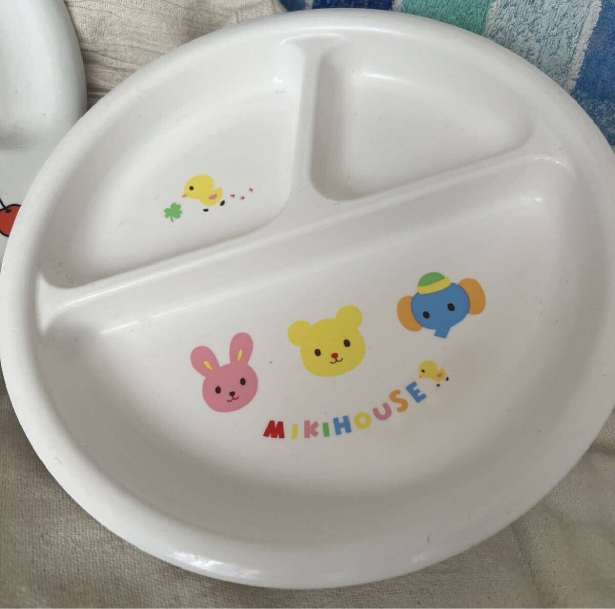 表面にカトラリーによる浅いスクラッチ傷、ミキハウス底のゴムの間に汚れやミキハウスの底隅に汚れあり。