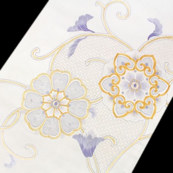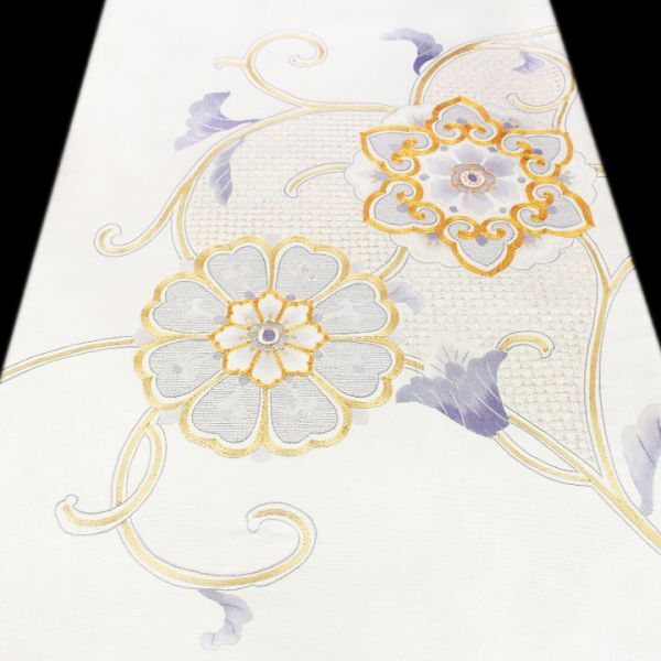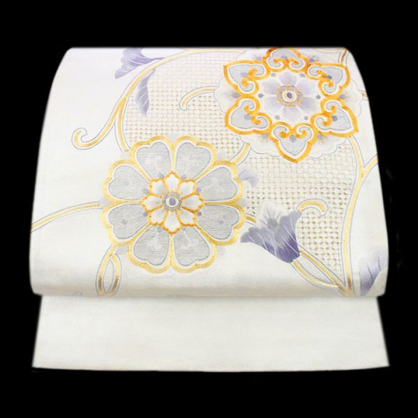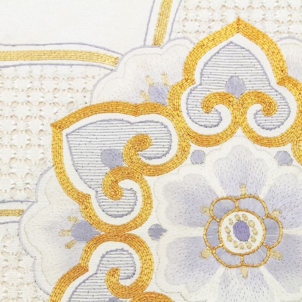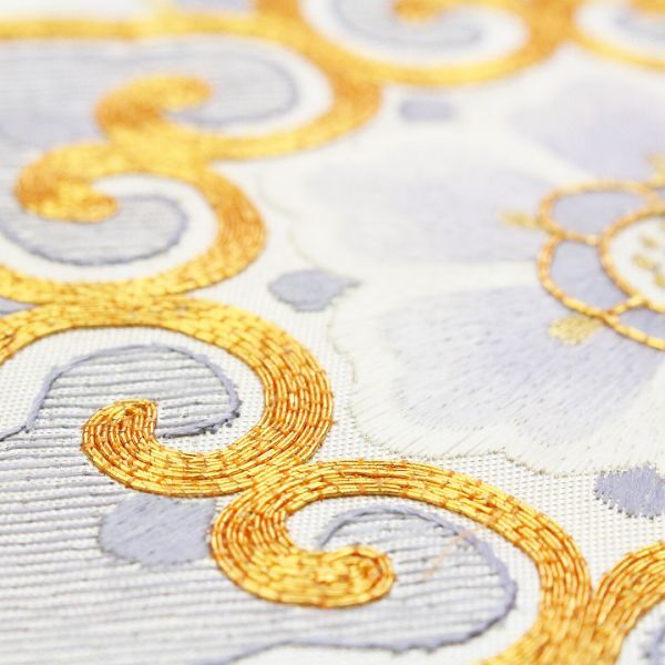 艶やかな【白】に彩られた帯地に映える【蘇州・スワトウ・金駒刺繍】 三大刺繍に数えられる最高峰の手仕事が一本の帯でお楽しみ頂ける、最高にラグジュアリーな《特選の袋帯》を入荷致しました。 手刺繍のみによってお柄付けされた帯はとても貴重で、また大変な人気もありますので、ぜひこの機会にごゆっくりご覧下さい。 上質な絹糸を用いて織り成された、エレガントな光沢を湛えた帯地。 他の帯では感じることが出来ないほどの特別な艶めきを放っています。 その上、合わせるお着物や小物を選ぶことのない上品なお色目は、大変コーディネートしやすい優れもの。 帯幅いっぱいにあしらわれた、大人気モチーフ【唐花文】によって、お出掛けされる先々で美しく映え、大人の女性に相応しいエレガンス”と華やぎ”とを併せ持つ、理想的な帯姿を叶えてくれます。 蘇州刺繍・スワトウ刺繍はとても有名で、長い歴史によって彩られた格式の高い三大刺繍の一つ。 匠の技を持つ職人さんの根気と費やしたお時間を想像しますと、こちらの作品を手にする喜びを感じずにはいられません。 いつまでも触れていたくなるほどに上質な風合い… また、敢えて帯芯を入れずに仕立てているため、見た目からは想像も出来ないほど軽やかなお締め心地…♪ 黒留袖や色留袖・訪問着や附下・色無地や江戸小紋など、フォーマルからセミフォーマルに最適。 また、袷のお着物にはもちろん単衣との相性も抜群です。 こちらの帯をまとうだけで、いつものお着物が見違えるかのような上質感”の漂うコーディネートにしてくれる《特選の逸品》です。 これ程までにラグジュアリーな手刺繍が施され、さらに一度も締められていない【未使用品】の袋帯が入荷することは滅多にございません。 ご結婚式やパーティー、入学園式やお宮参り・七五三のお付き添い、お食事会や観劇・コンサートへのお出掛けにも… ぜひこの機会に手刺繍の帯をまとって頂き、ご同席される方々を魅了して下さい。 |