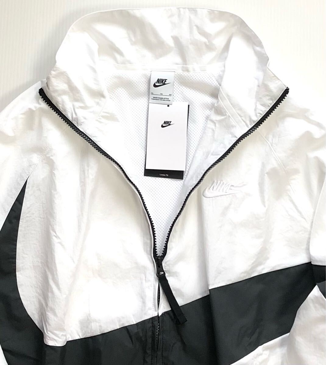 新品 送料込 NIKE HBR STMT WOVEN JACKET XLサイズ 白黒 ナイキ ハイブリッド ウーブン ジャケット BIG SWOOSH ビッグ スウッシュ ナイロン