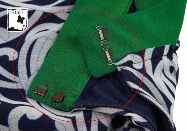 コンディション | ウエスト・身頃・裾・後ろ裾にシミ、ホック部分に変色があります。(写真参照)クリーニング済み |