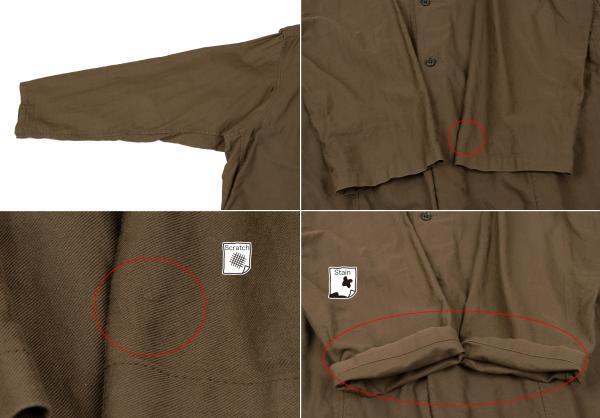 | コンディション | 襟裏・袖裏に汚れ、肩山に擦れ、前身頃に変色、裾裏に色褪せ、左袖先にダメージがあります。(写真参照)その他目立ったシミ、汚れ、ほつれ等はありません。クリーニング済み。 |