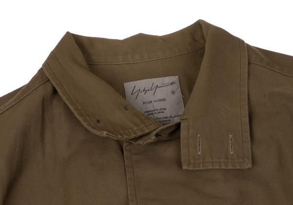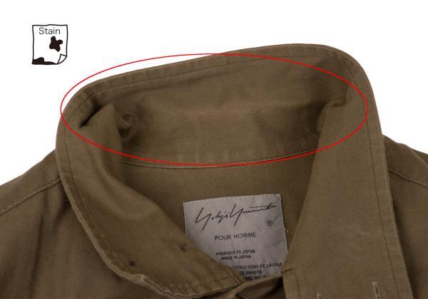 | ヨウジヤマモト プールオムYohji Yamamoto POUR HOMME コットンスタンドカラーロングシャツ カーキ4 |