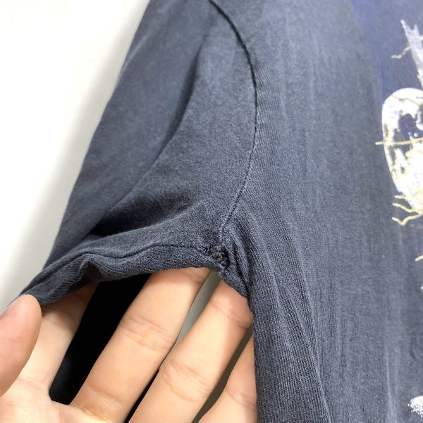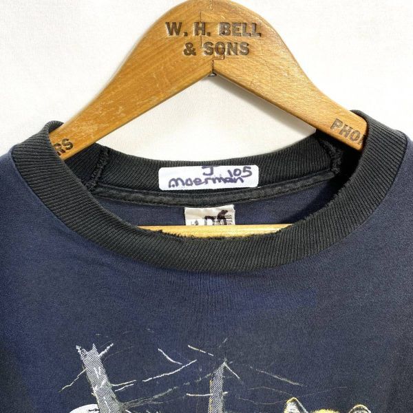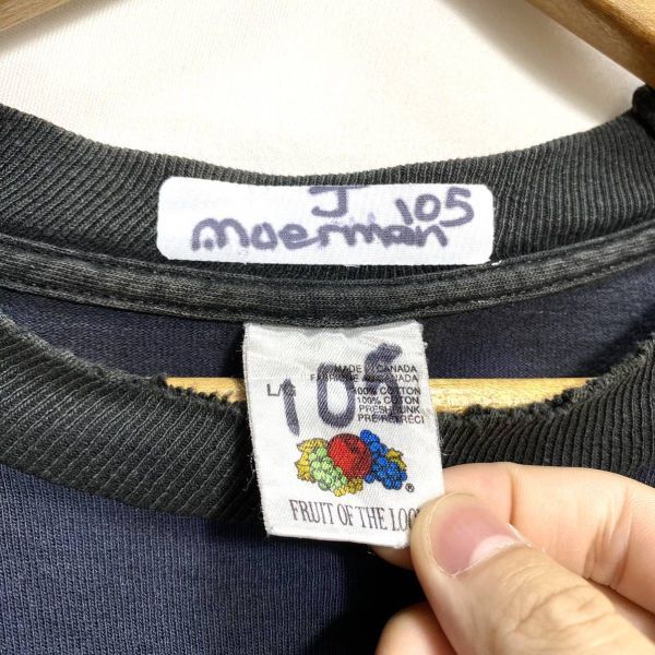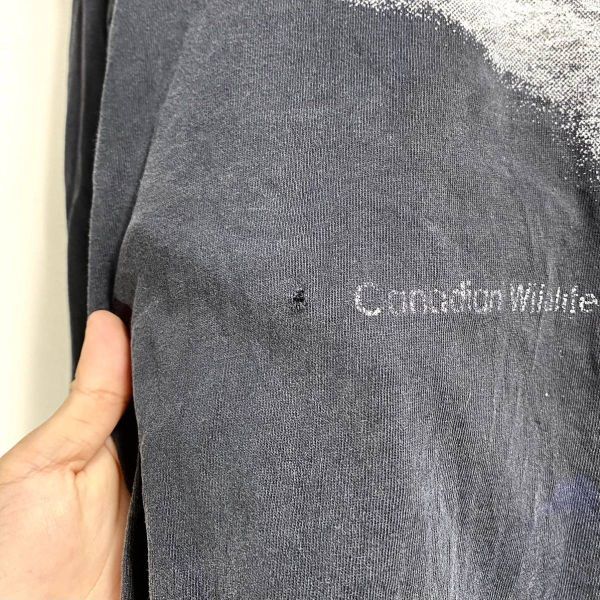 ■ 雰囲気◎ 90s ビンテージ CANADA製 FRUIT OF THE LOOM ウルフ オオカミ 雪 イラスト 長袖 Tシャツ ロンT サイズL 黒 ボロ アメカジ ■