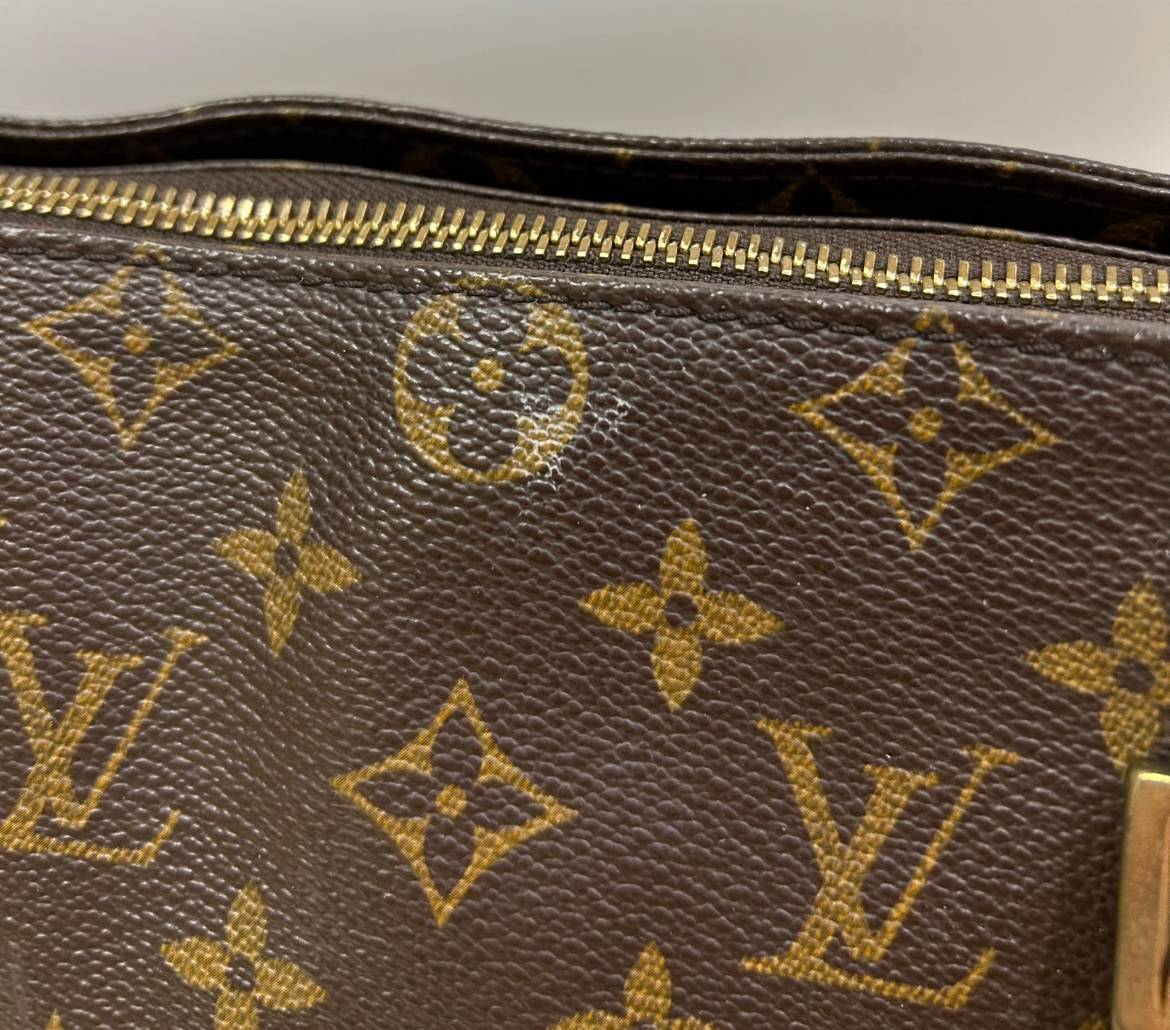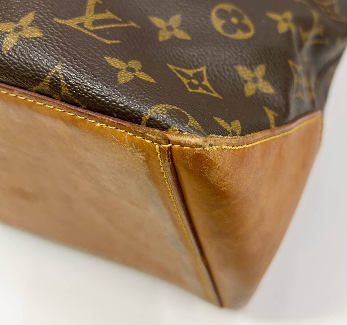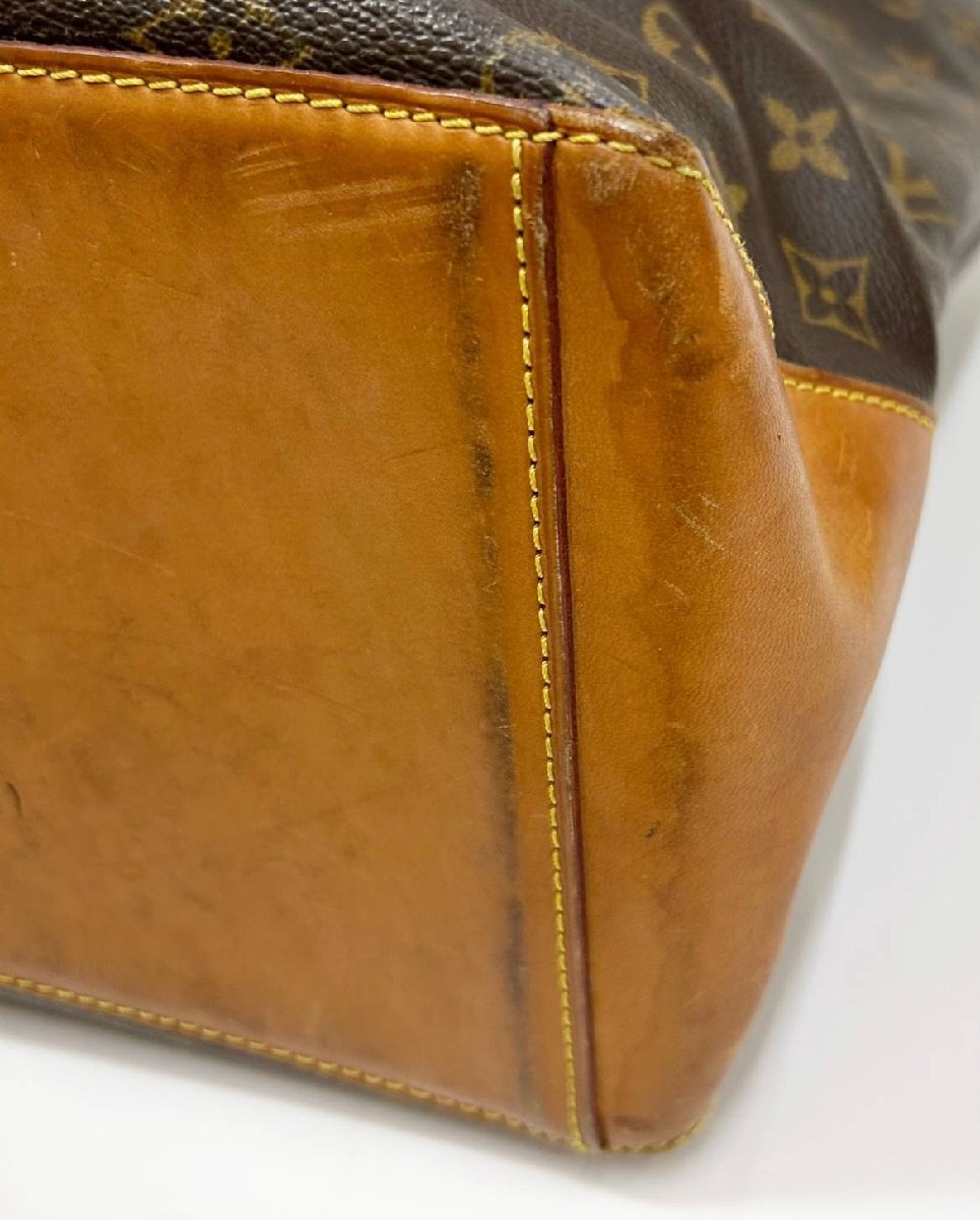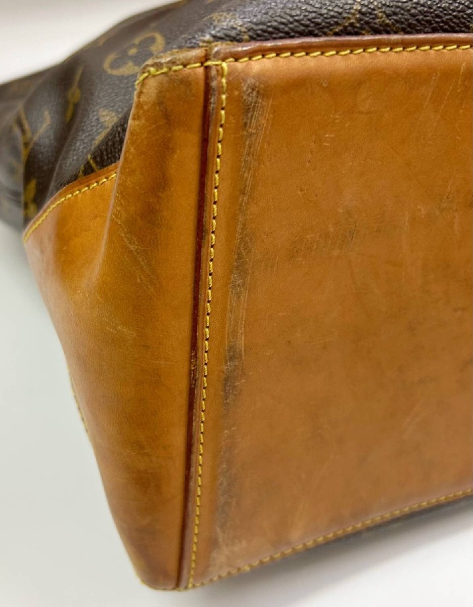 ■商品の状態:ヌメ革全体に濃い日焼け、シミ、汚れ、傷、擦れなど目立つ使用感があります。ショルダーストラップに黒ずみやヨレがあります。モノグラムキャンバスにも部分的に白っぽい汚れがあります。底角が擦れています。金具に傷やメッキ剥げがあります。内側には擦れ、汚れなどの使用感はあるものの極端に目立つような欠点はありません。全体的にやや型崩れしています。