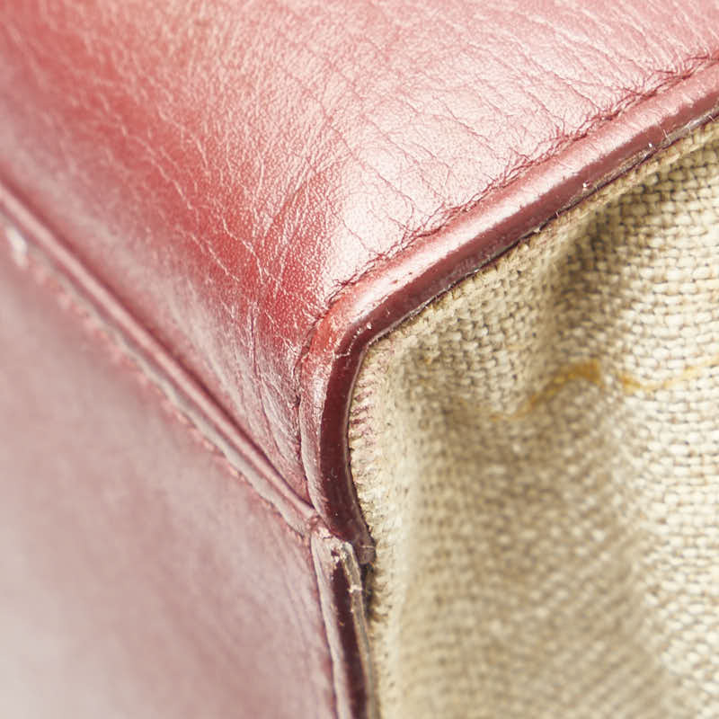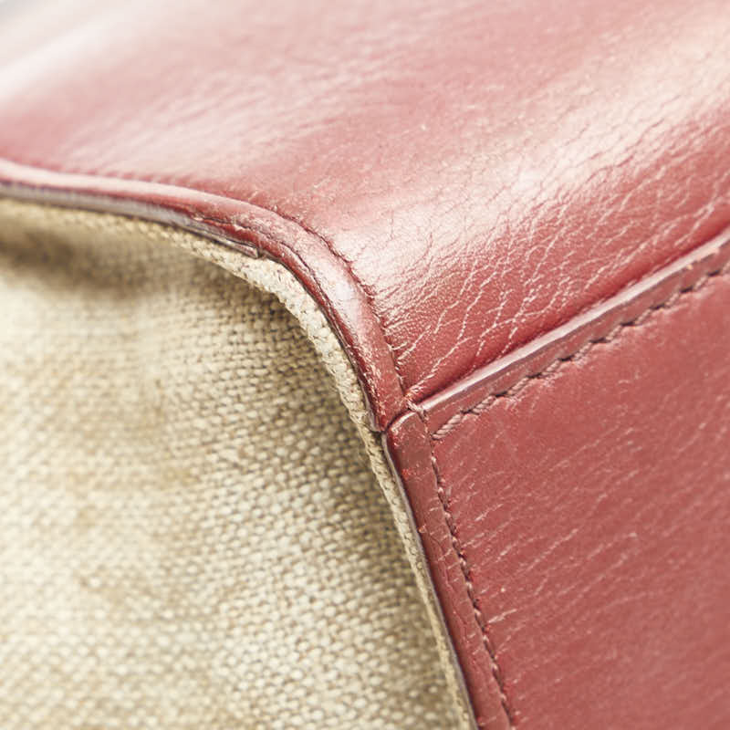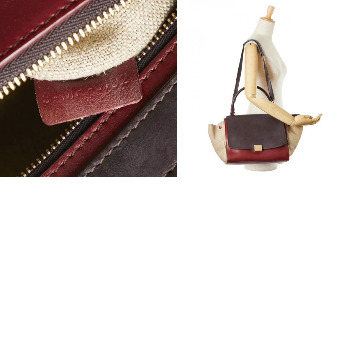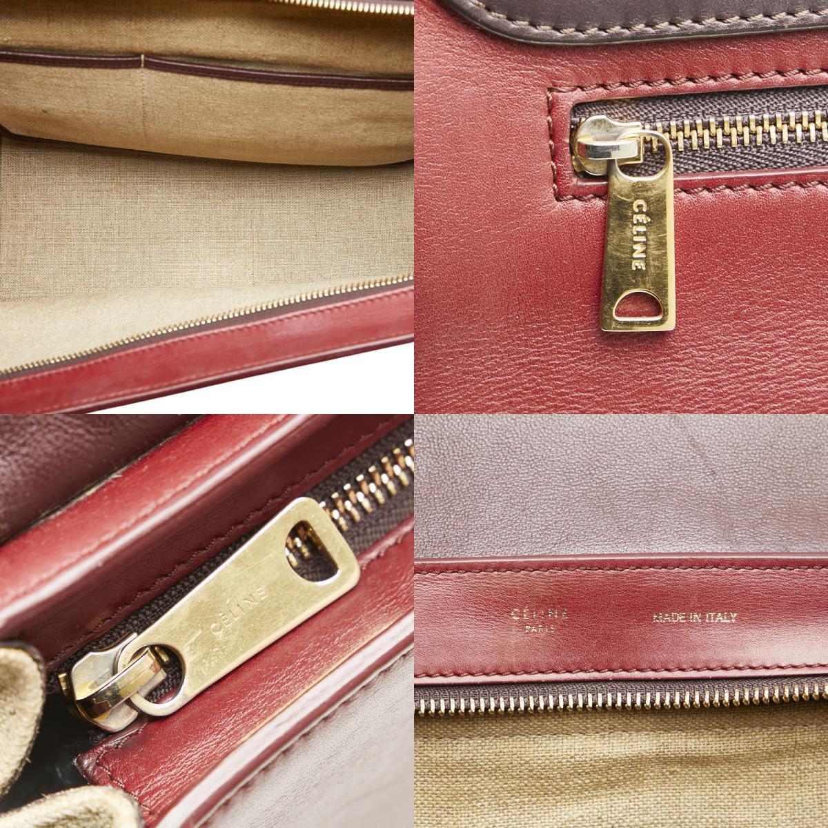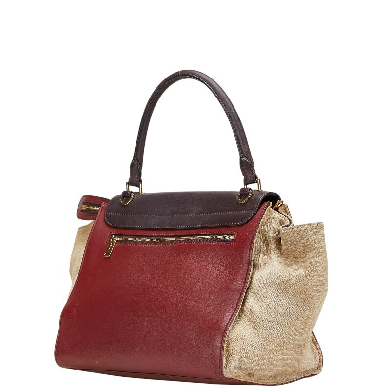 セリーヌ トラペーズ ミディアム ハンドバッグ ショルダーバッグ 2WAY レッド ブラウン ベージュ レザー キャンバス CELINE 【中古】