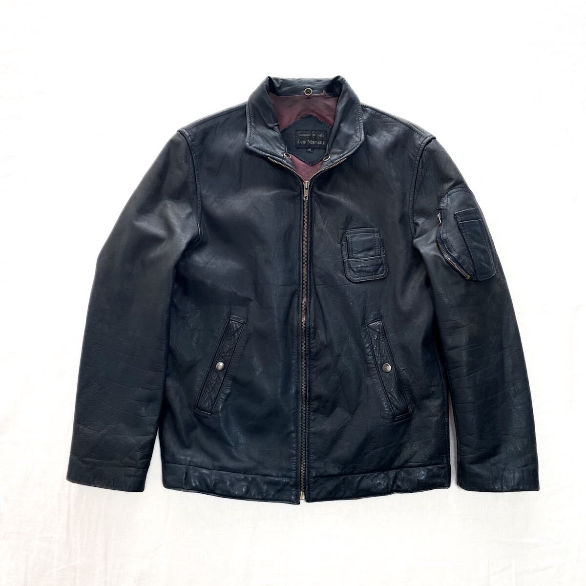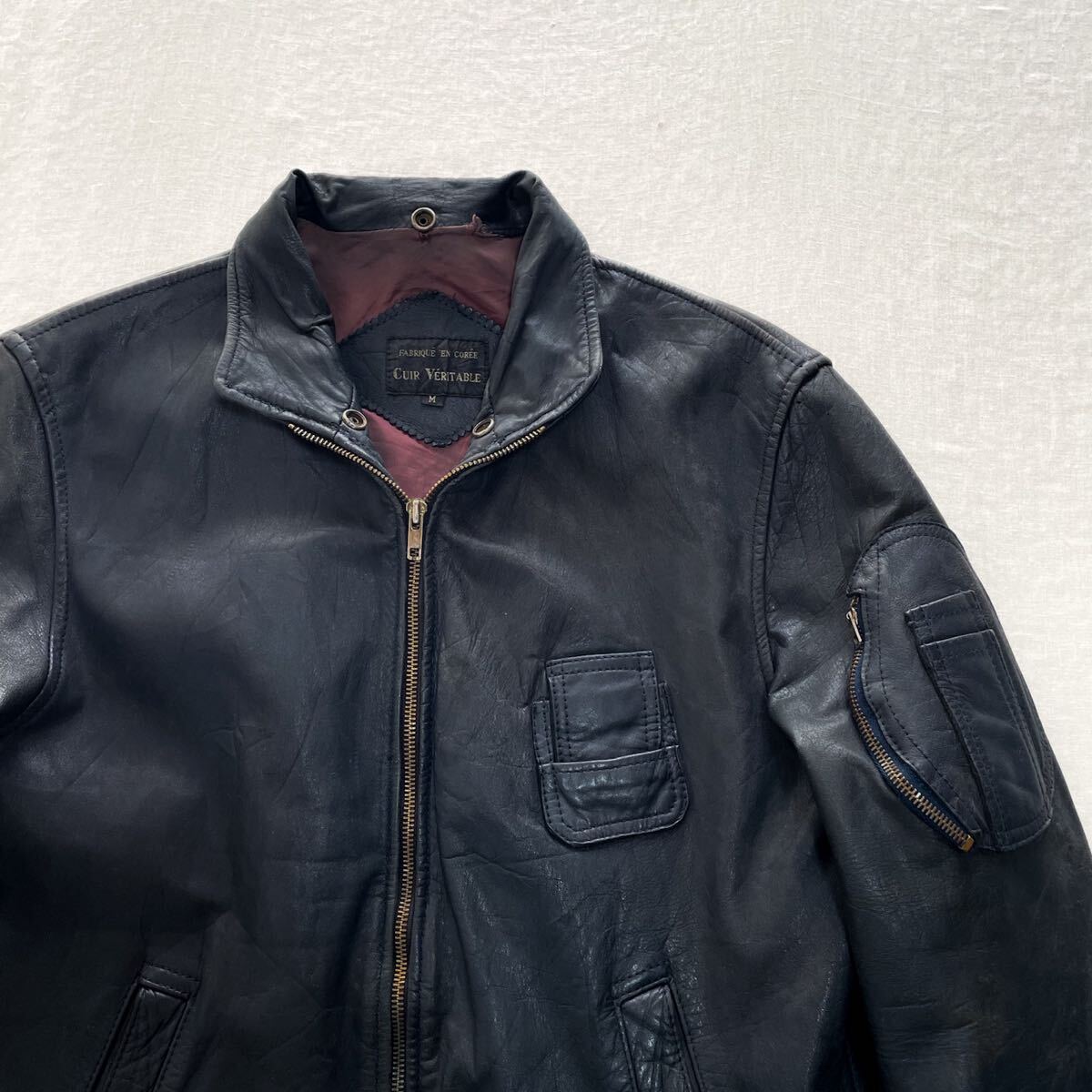 フランス軍 パイロット レザー フライトジャケット M ダークネイビー ドイツ軍 イギリス軍 RAF コルビジェ