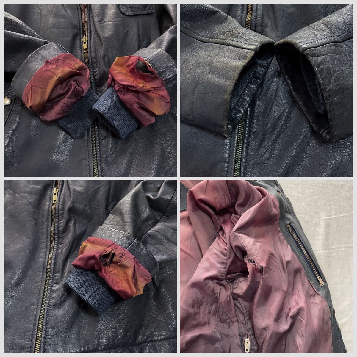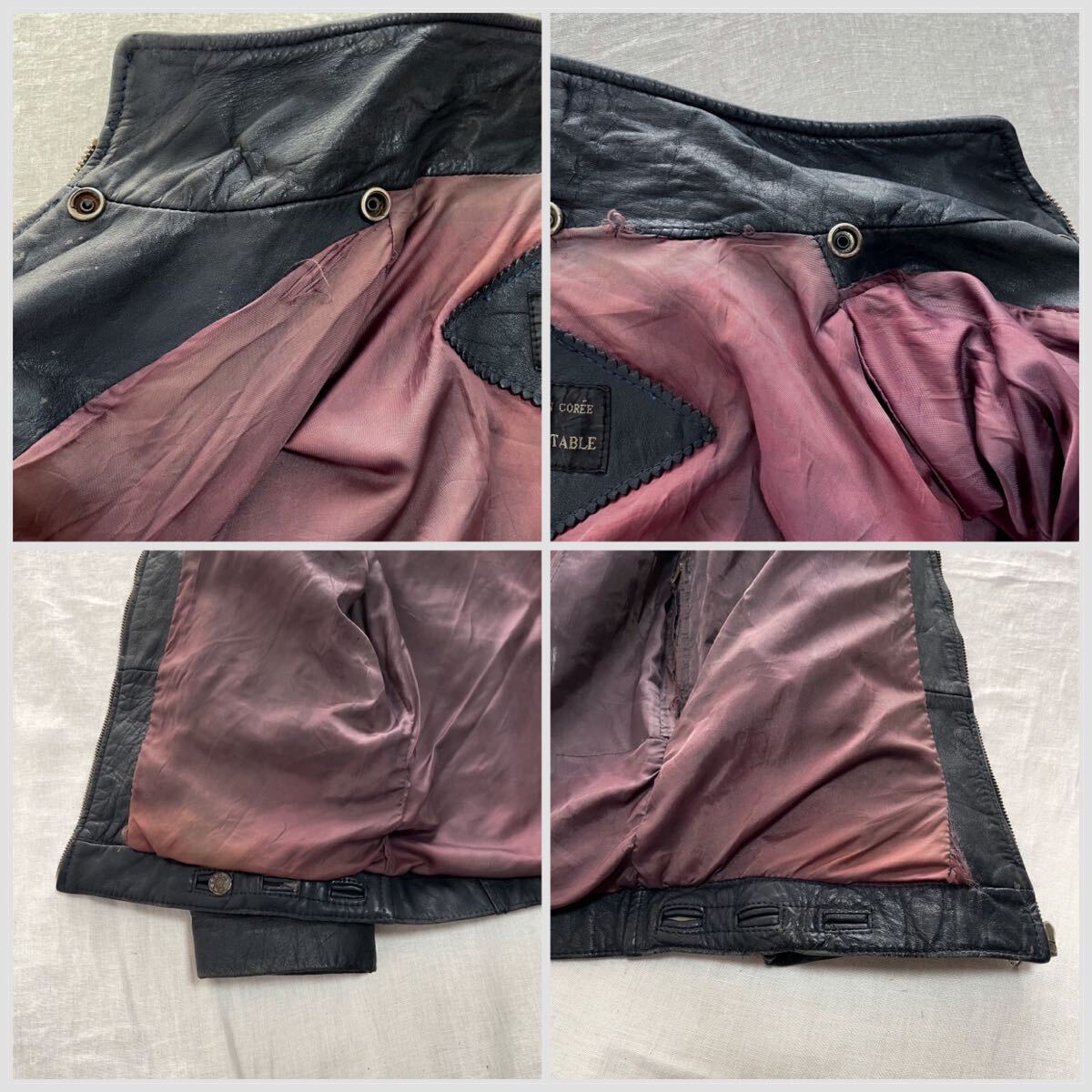 【Condition】レザー特有のスレ、キズ、裏地にダメージ、裾調節のコードが片側欠損しています。その他ダメージなどはありません。