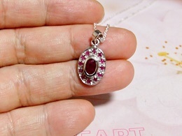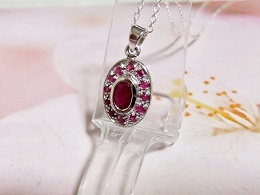 | サイズ | サイズ:★トップの大きさは、18×10ミリです。 ★ルビー 1石の大きさは、 大6×3ミリ、小1ミリです ★参考「チェーンは、シルバー925 小豆チェーン0.35x45cmです。」 |
