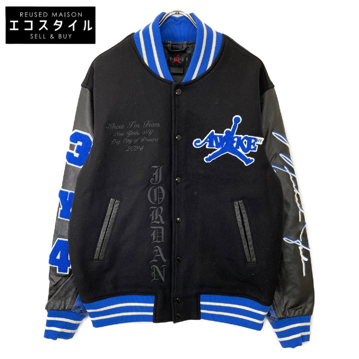NIKE ナイキ Jordan x Awake NYF Q5439-010 ブラック×ブルー Varsity Jacket ブラック S ジャケット ウール メンズ 中古