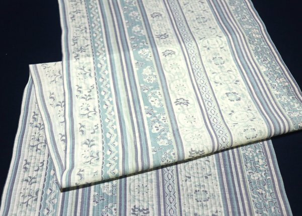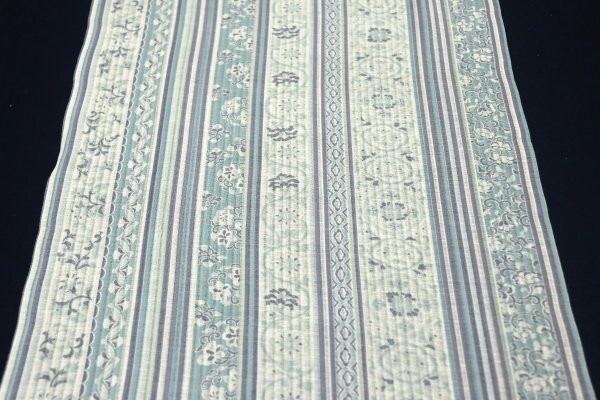 | 【京わぎれ】東レ 爽竹 縦絽 夏物長襦袢 はぎれ 大唐花文様 薄青緑色系 うそつき袖・替え袖用 2.2m ① | ||||