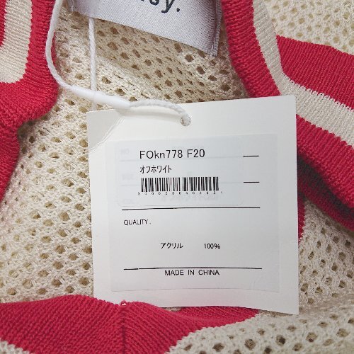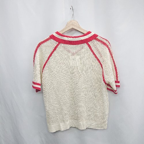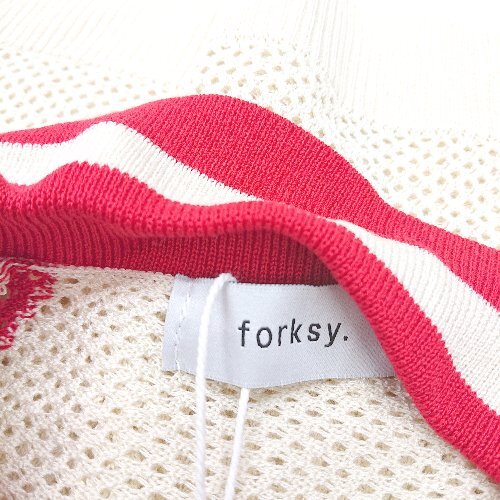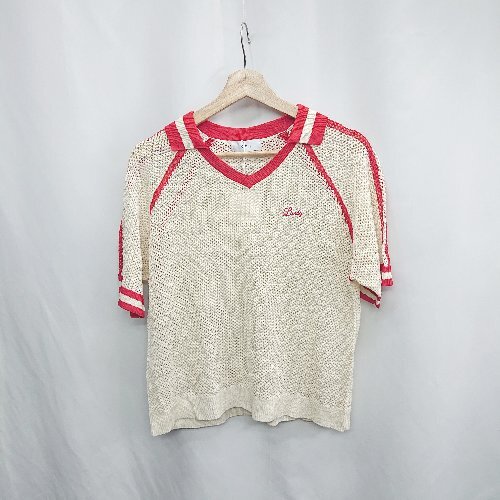 ◇ ⊂ ◎ ●未使用● forksy. フォルクシー メッシュ 半袖 カットソー サイズF オフホワイト レッド レディース E