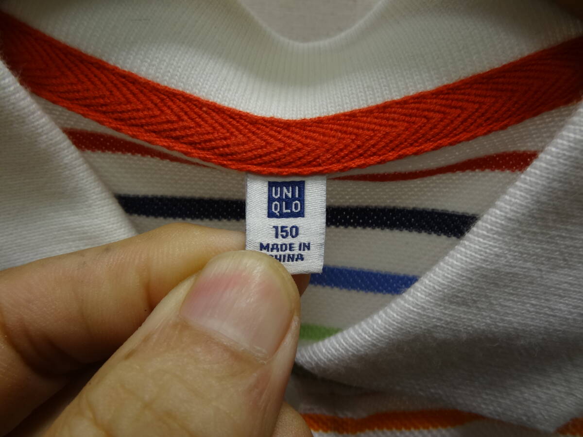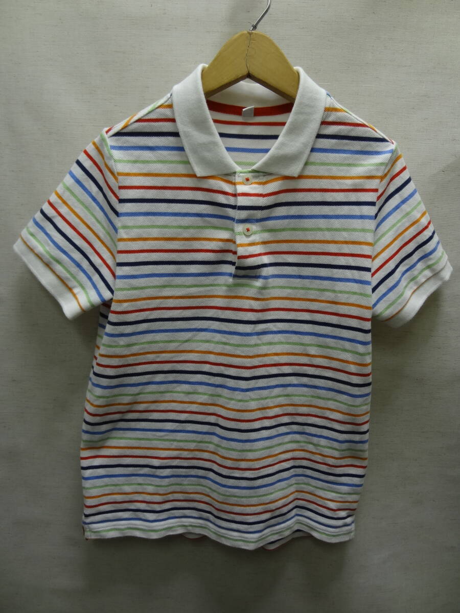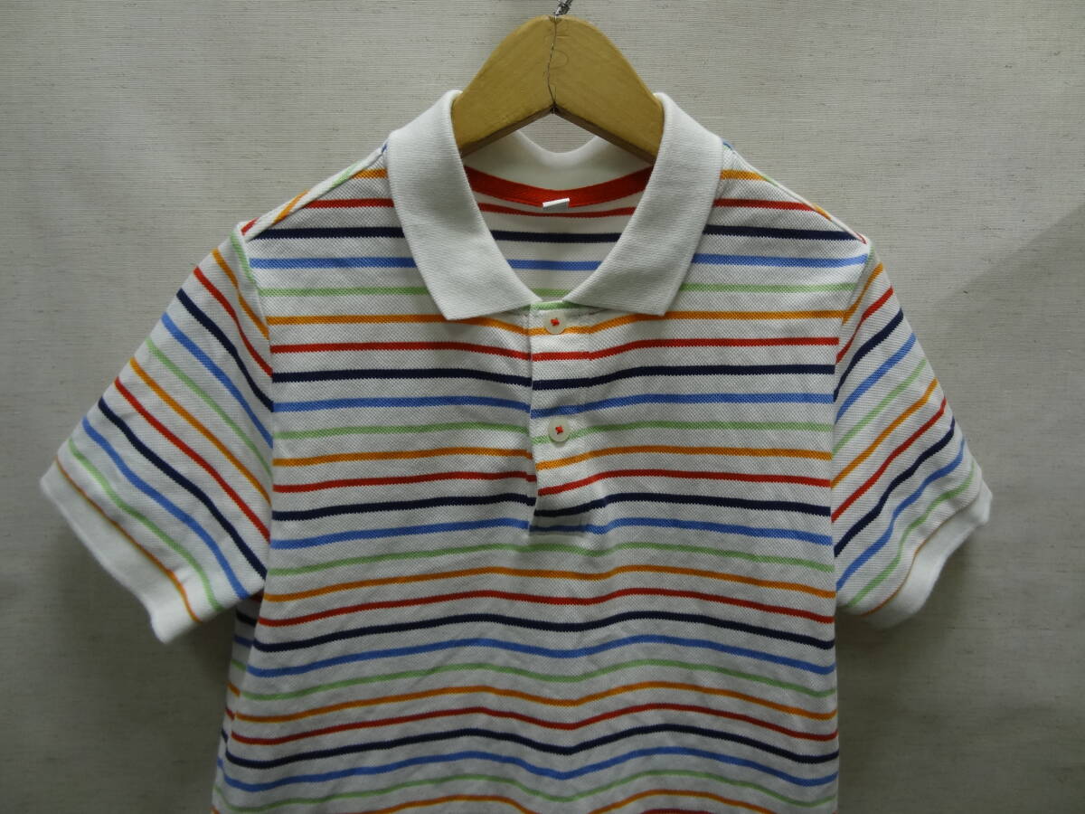 全国送料無料 ユニクロ UNIQLO 子供服キッズ男&女の子 虹色レインボーボーダー柄 鹿の子素材 半袖ポロシャツ 150