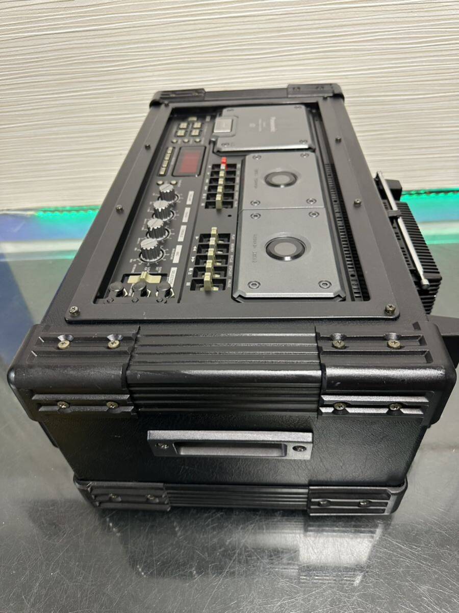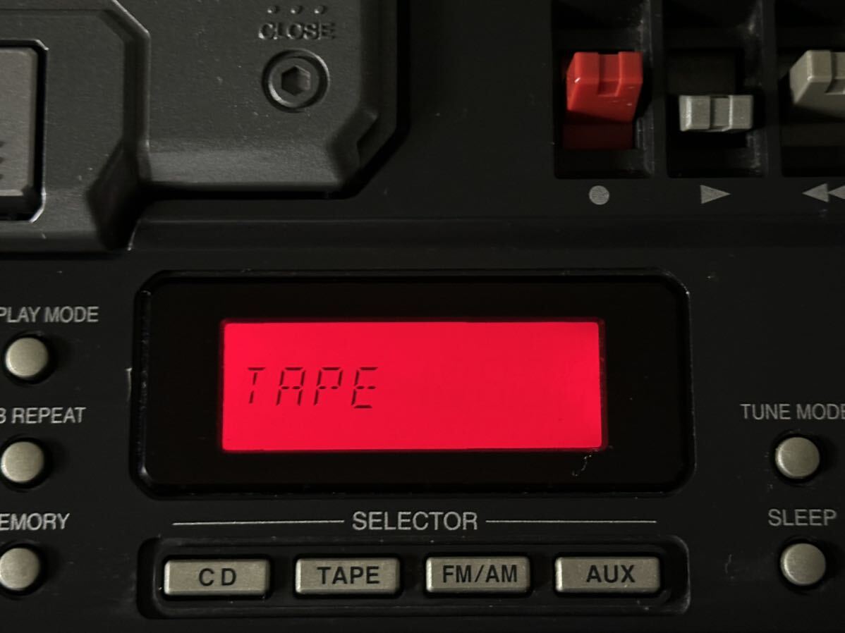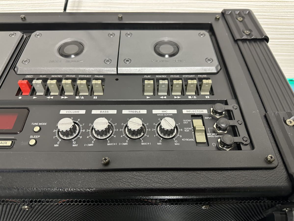 中古品ですが、同じ商品はなかなか手に入らない希少な一品です。ボリュームを上げてもスピーカーから雑音や音割れはありません。マイク/ギター/キーボード入力があるため、ミニライブにも最適です。ダブルデッキなのでカセットからカセットへのダビングも可能です。