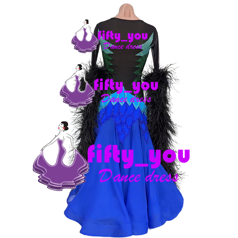 新品fifty_you レディース社交ダンスドレス サイズオーダー モダン競技パーティードレス スタンダード高級ドレス 立体感があるドレス