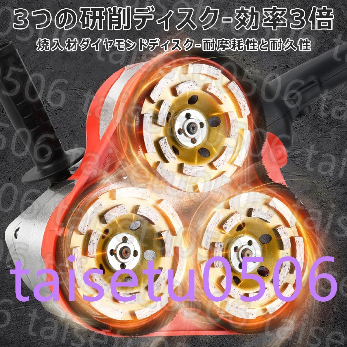 【3つの研削ヘッド】:可変速研磨機には3つの研削ヘッドと3つのフリーダイヤモンドコンクリート研削砥石があり、研削面積が増加し、より耐摩耗性と耐久性があります。