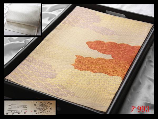 蔵【テ993】厳選逸品 本場筑前博多織 雲紋 気品豊かに 正絹純金糸両面全通高級美術袋帯 ◇検◇簪着物名古屋帯和装小物帯締め