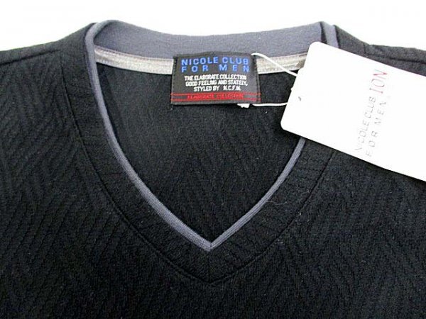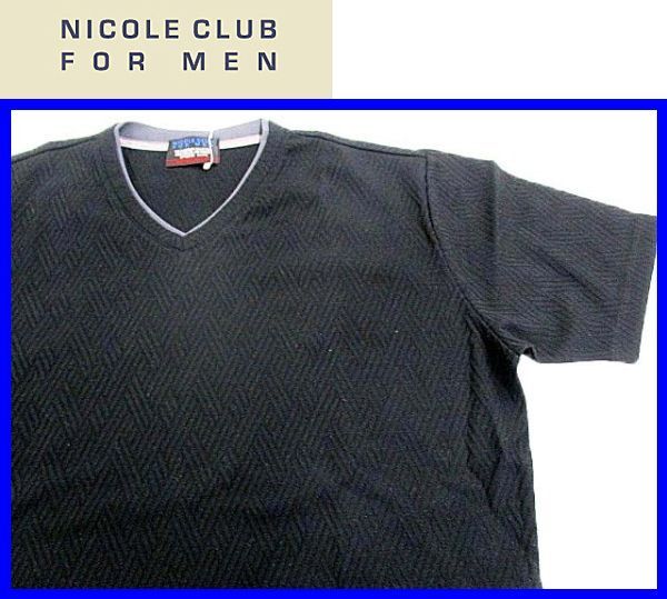 新作★48(L)★\7590〓NICOLE CLUB FOR MEN ニコル〓バスケットリンクスジャガードVネック半袖Tシャツ49