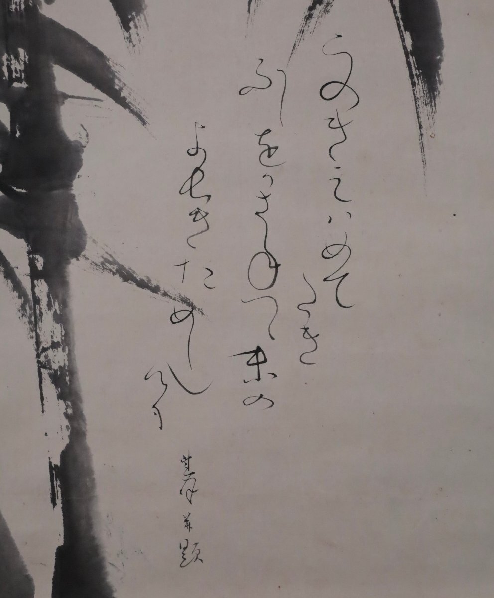 【模写】吉】12201 大田垣蓮月・忍向月照 竹画賛 歌人 書家 清水寺 法相宗 仏教 西郷隆盛 茶掛け 茶道具 中国画 掛軸 掛け軸 骨董品