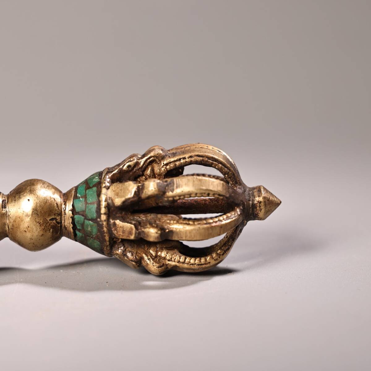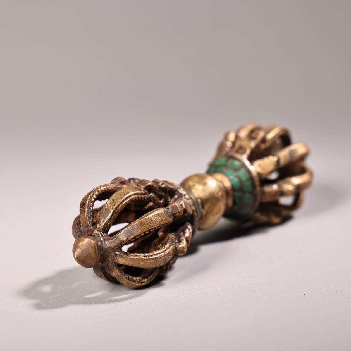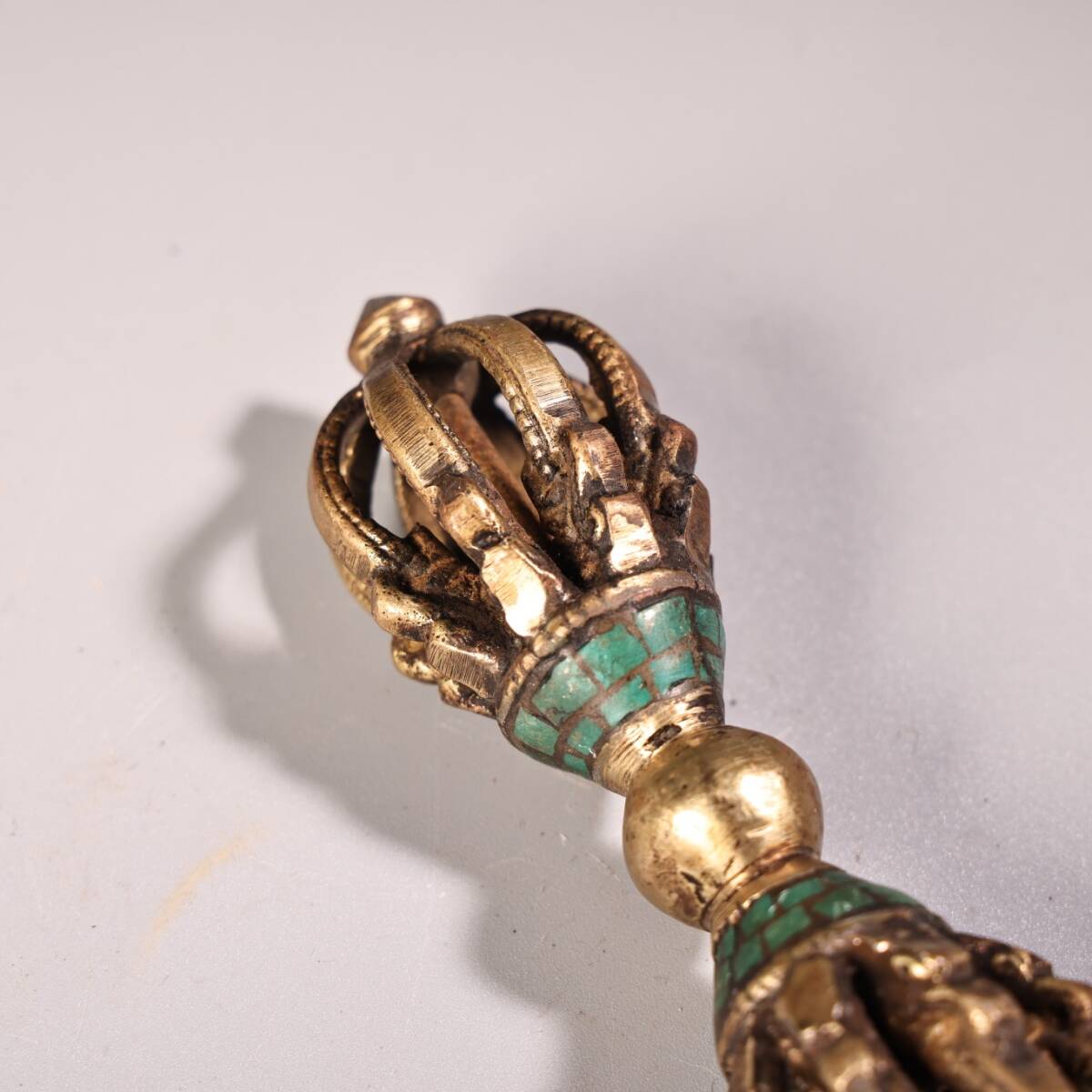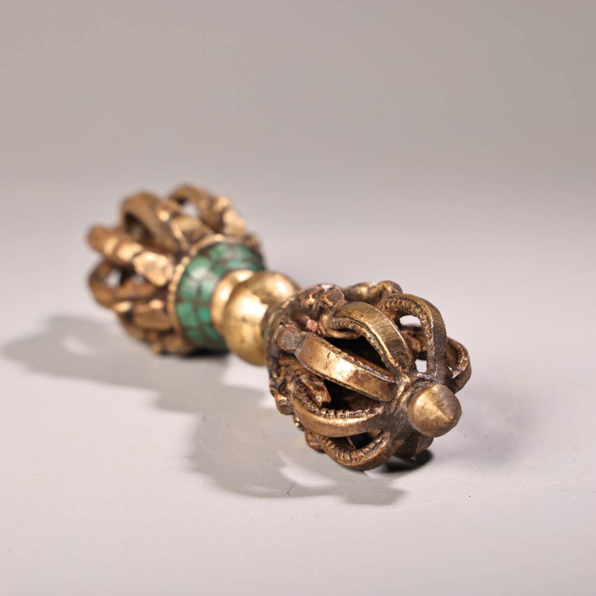 古寺廟結縁 古銅彫 手工嵌宝石 九股多杰金剛杵 法器 法具 風水鎮宅 極細工 古賞物 古美味 東洋彫刻 時代物 骨董 中国古美術