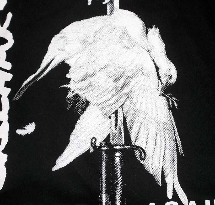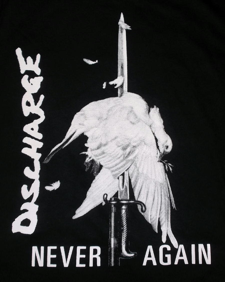 | ディスチャージTe NeverAgain 黒 新品/正規品 究極のハードコア・バンド、ディスチャージのTeシャツです。 あのCRASSに強い影響を受け1978年に結成、80年不況真っ只中のロンドンからデビュー・シングル「REALITER OF WAR」をリリース。 徹底した反戦・反核をスローガンに、メタリックでノイジーなギターと、ひたすら突きすすむ2ビートによって生み出されたハードコア・サウンド バンドのスタイルは、80年代以降のHARDCOREシーン全てに影響を及ぼしているのは周知の事実です。 「ディスチャージに触れてないロック史など全てデタラメだ!」と評されるとおり、全てはここから始まりました。 名曲NEVER AGAINのシングルジャケ! 平和の象徴鳩が串刺しにされたショッキングなヴィジュアルです。 新品・正規品 Sサイズ 女性~細身の170cm位迄の方に良いかと思われます。肩幅38cm、着丈67cm、身幅44cm 郵メール便送料¥250(代引き不可・紛失補償なし) LUCKY13、THRASHER、Sailor Jerry等~アメキャラ・ムービー等ライセンスTシャツ、RATFINK関連品、バンドTシャツ等取り扱っております。 ** 他にも色々出品中です。 CWBT IWTS | |||||||