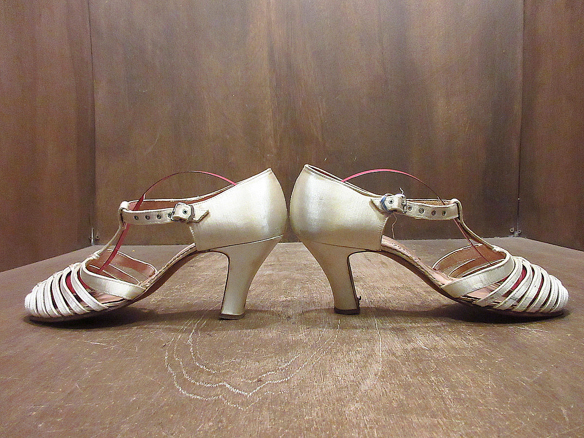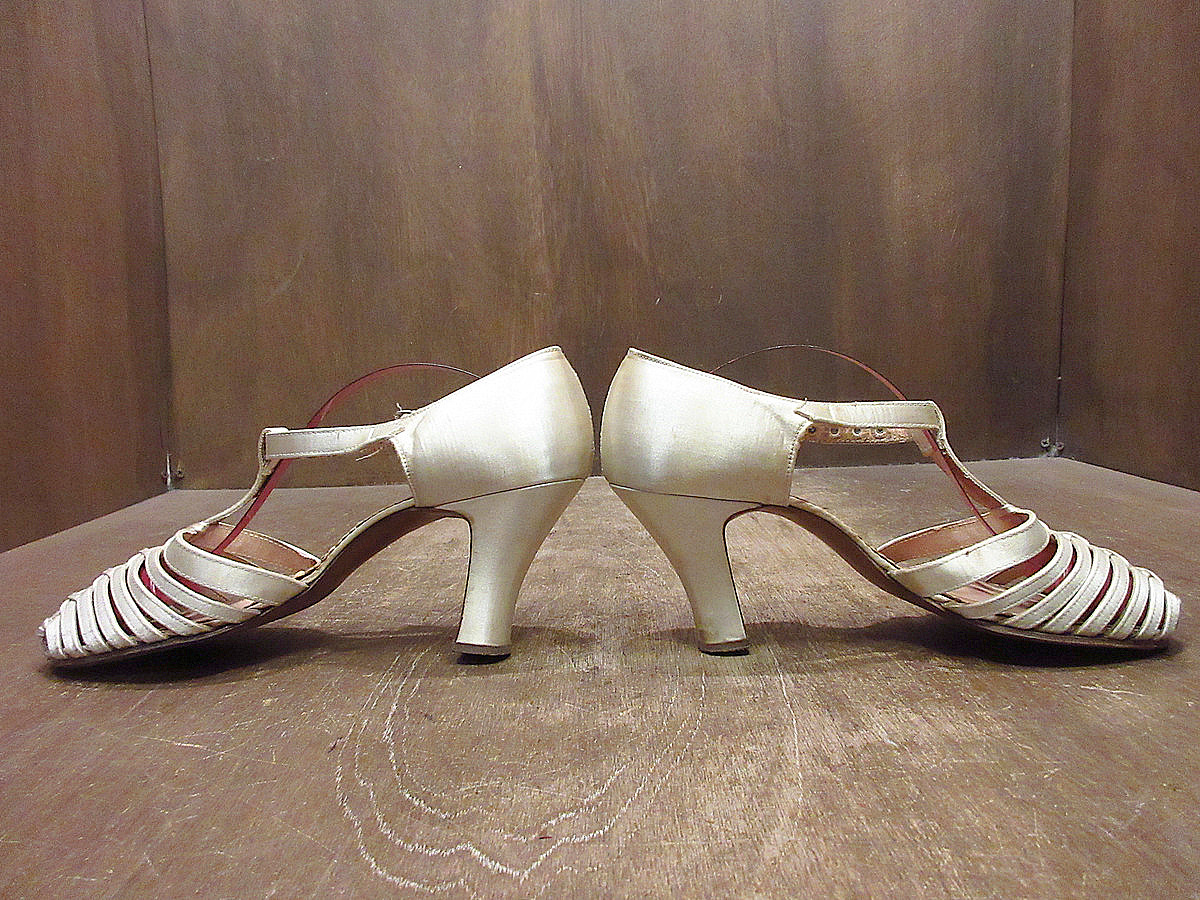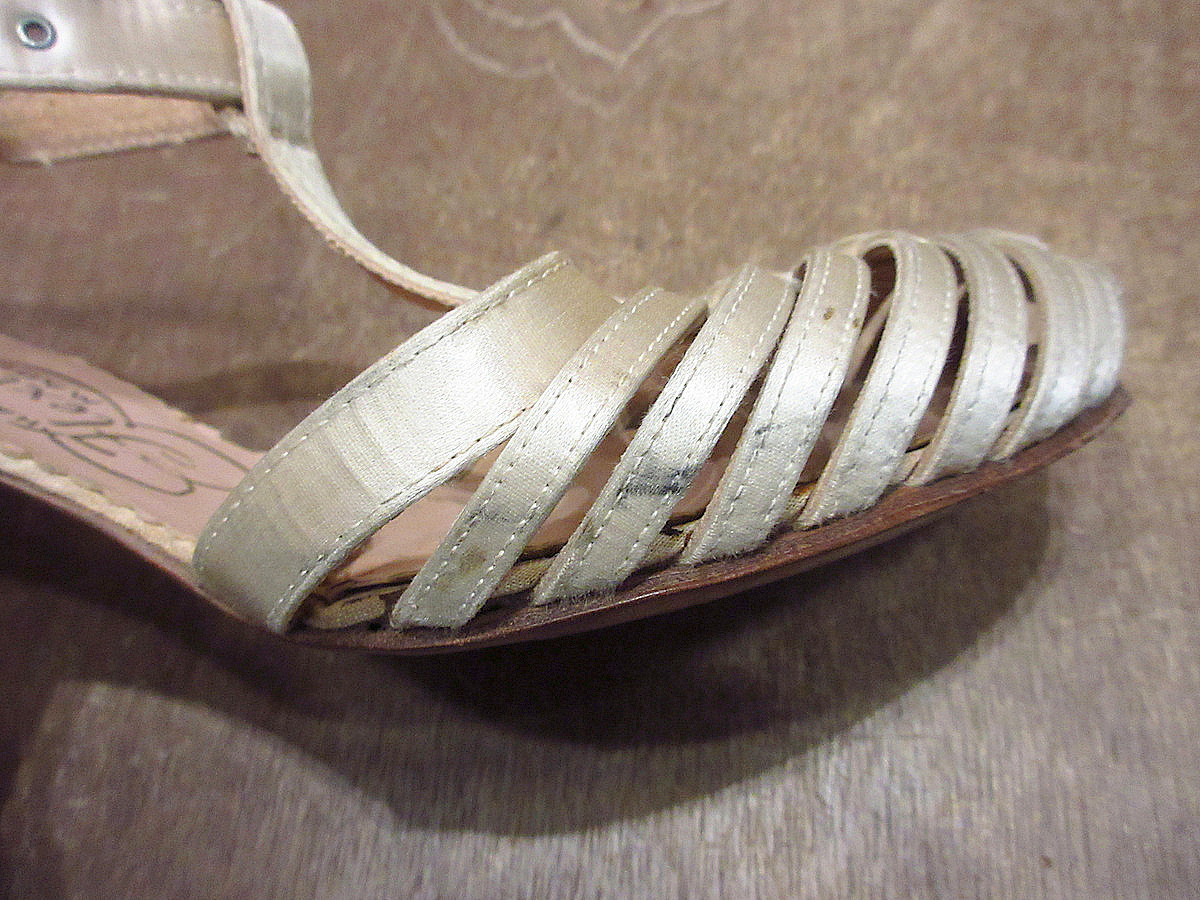 1920's~1930's Flexible サテン アンクルストラップパンプス 生成り