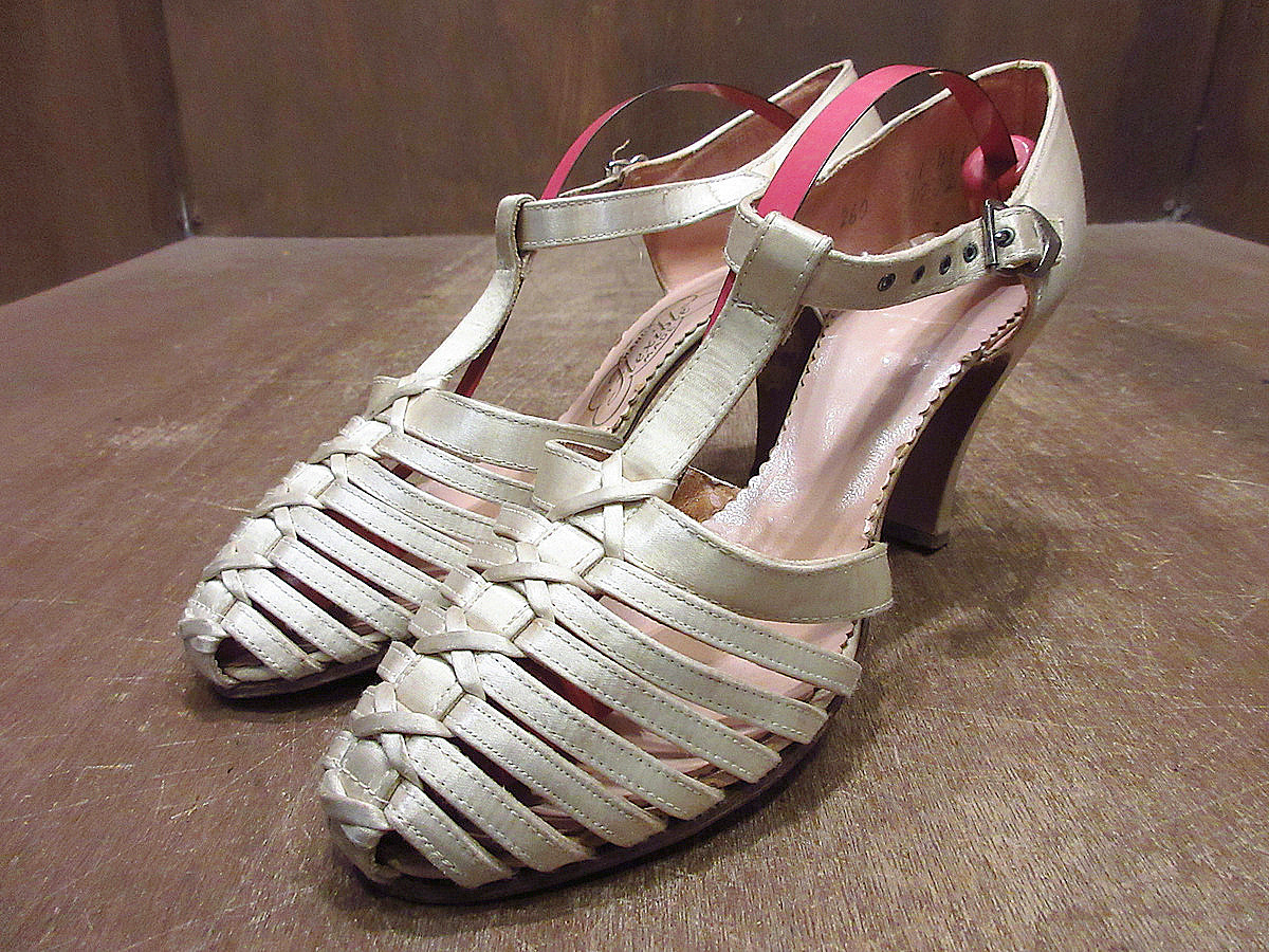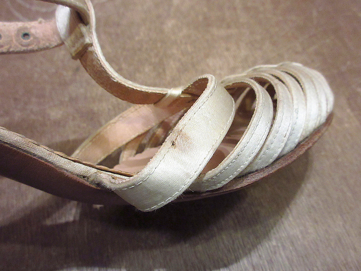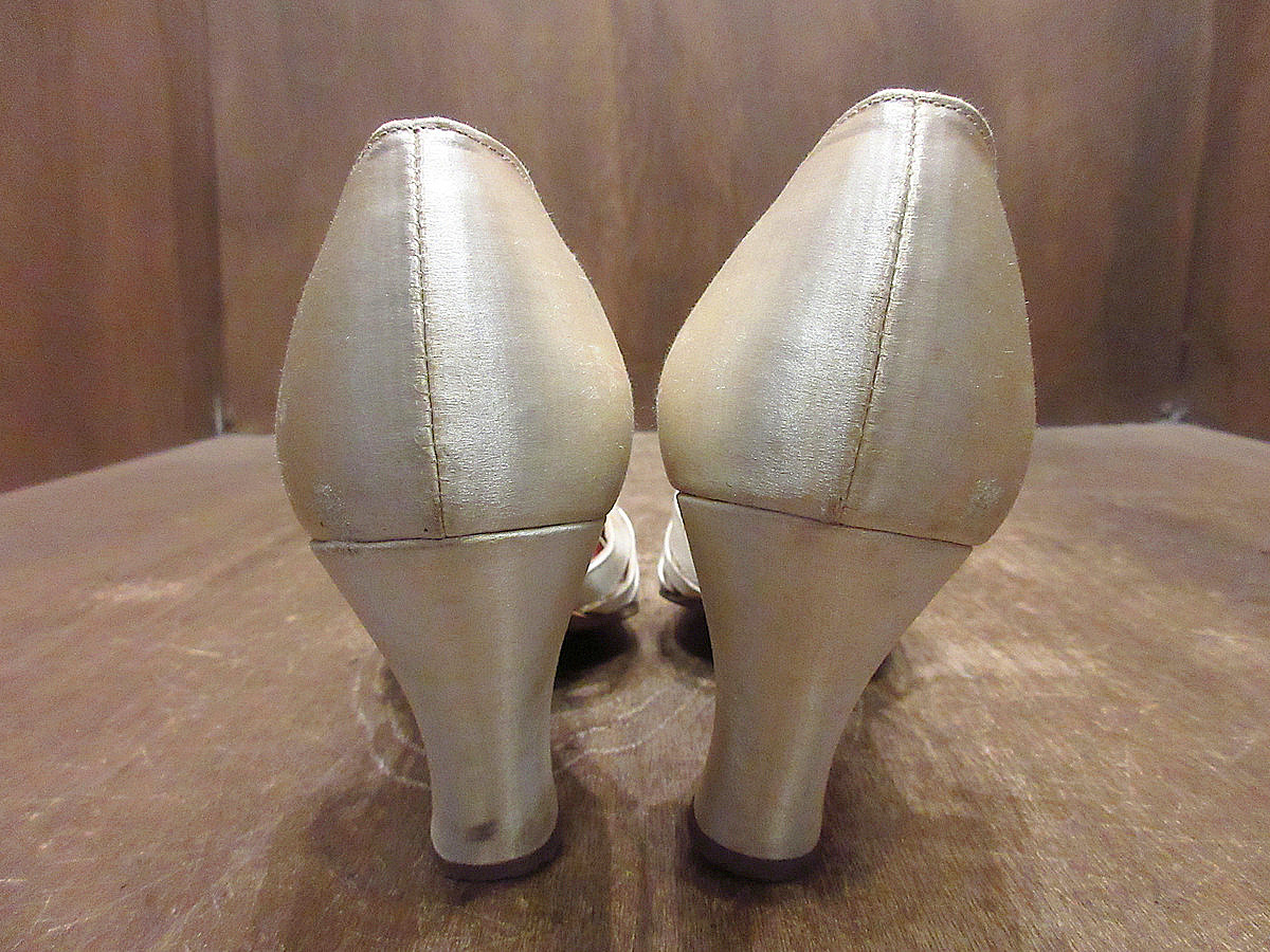 1920's~1930's Flexible サテン アンクルストラップパンプス 生成り