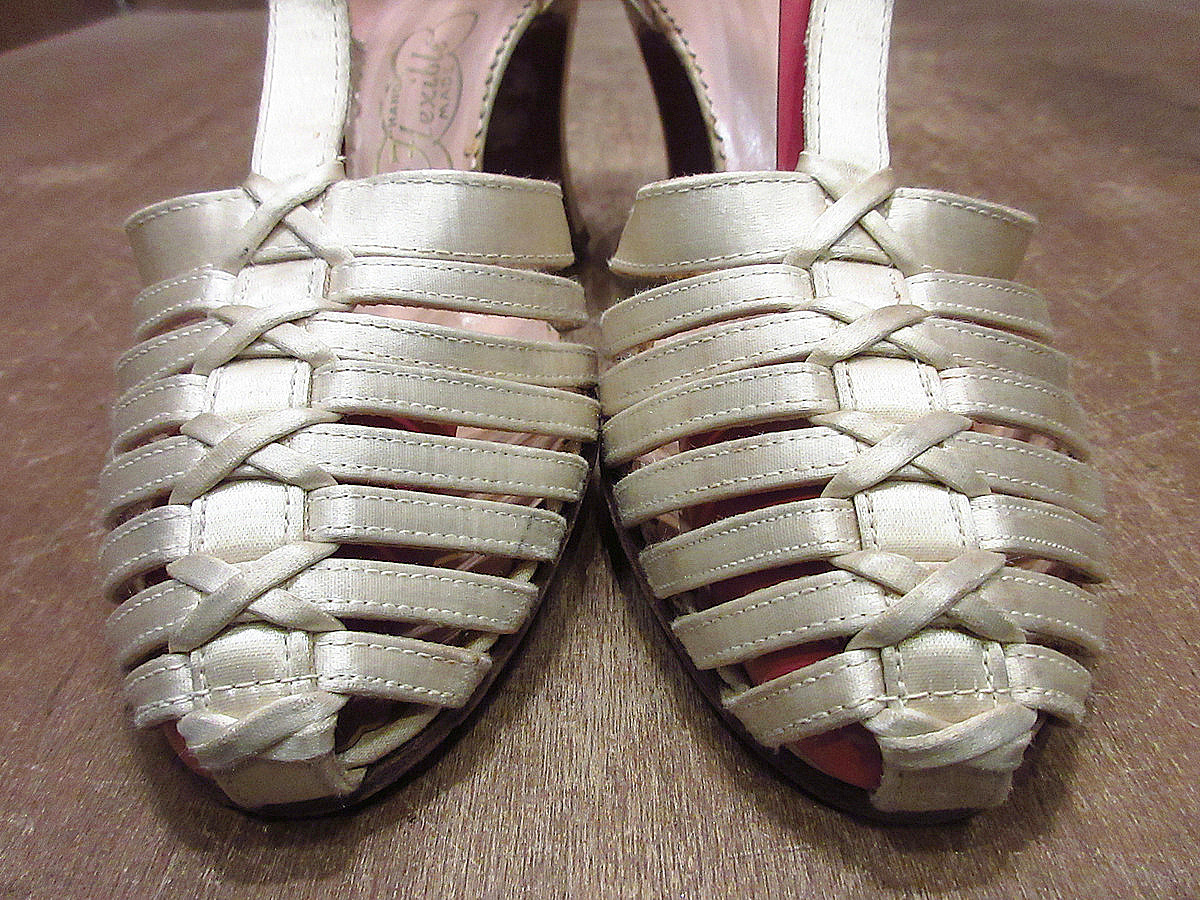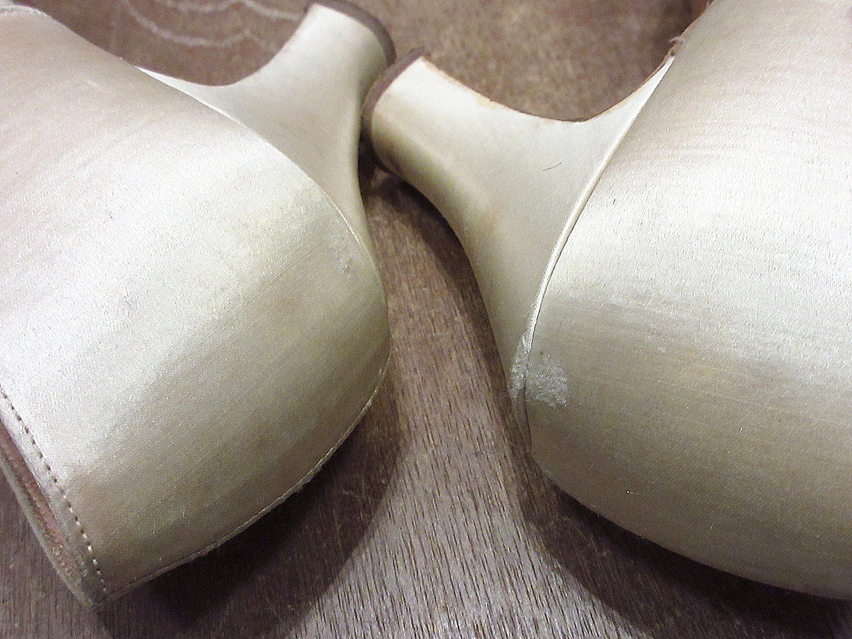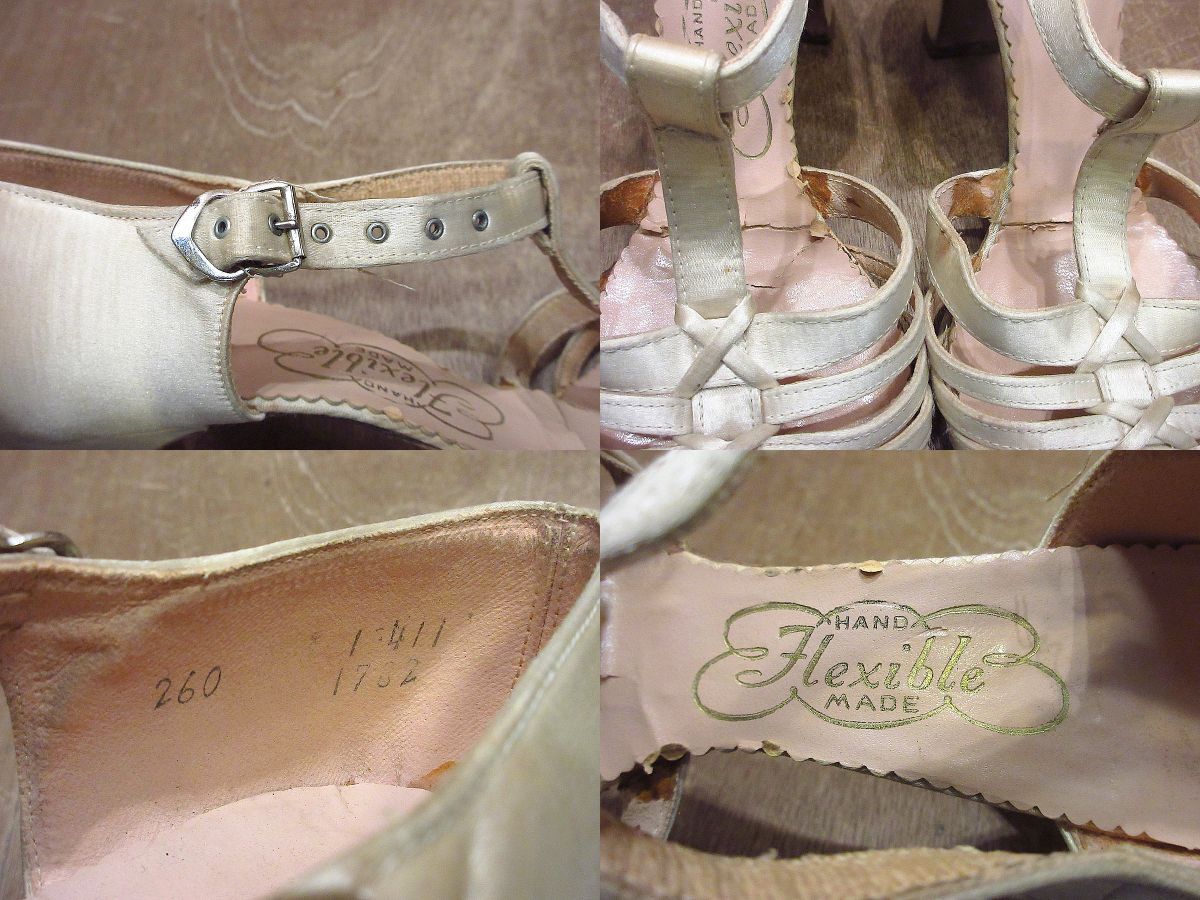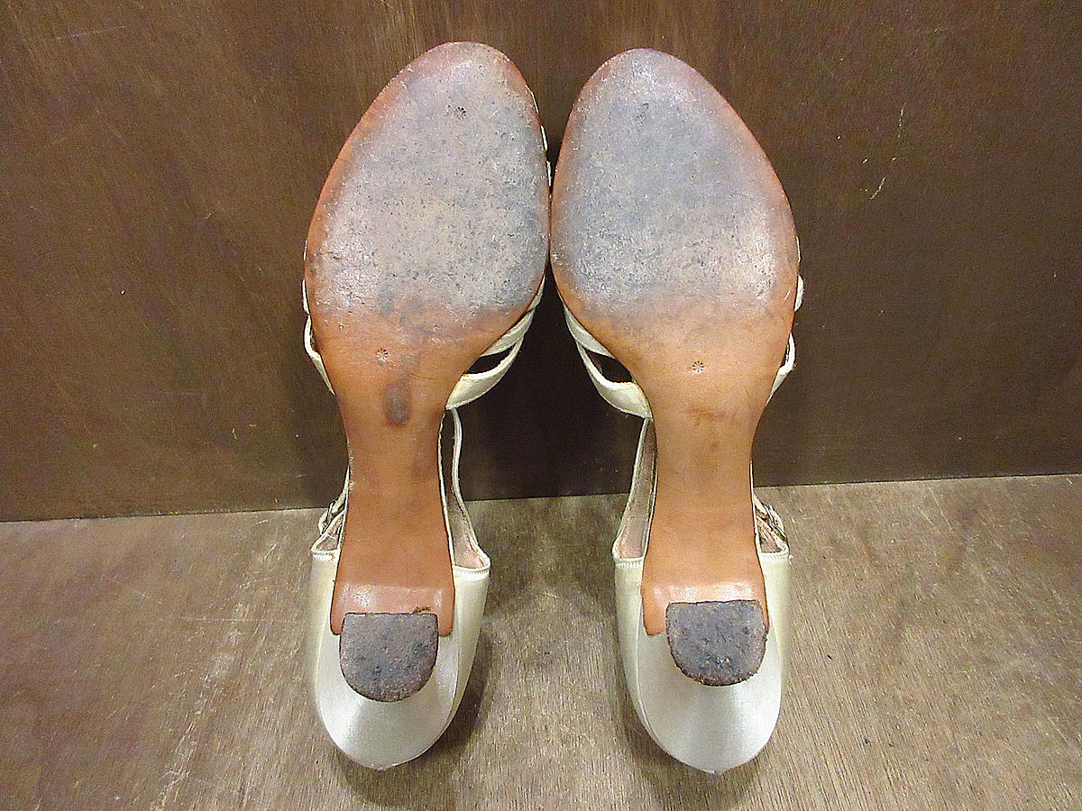 ビンテージ20's30's●Flexibleサテンアンクルストラップパンプス生成りsize 6B●240714i1-w-pmp-23cmレディース靴アンティークシルク