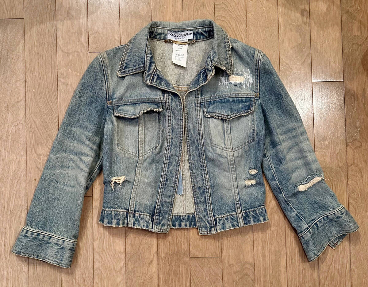 ■DOLCE & GABBANA 美品 USED ダメージ加工 デニム・ジャケット LT.INDIGO-38 Gジャン ドルチェ&ガッバーナ