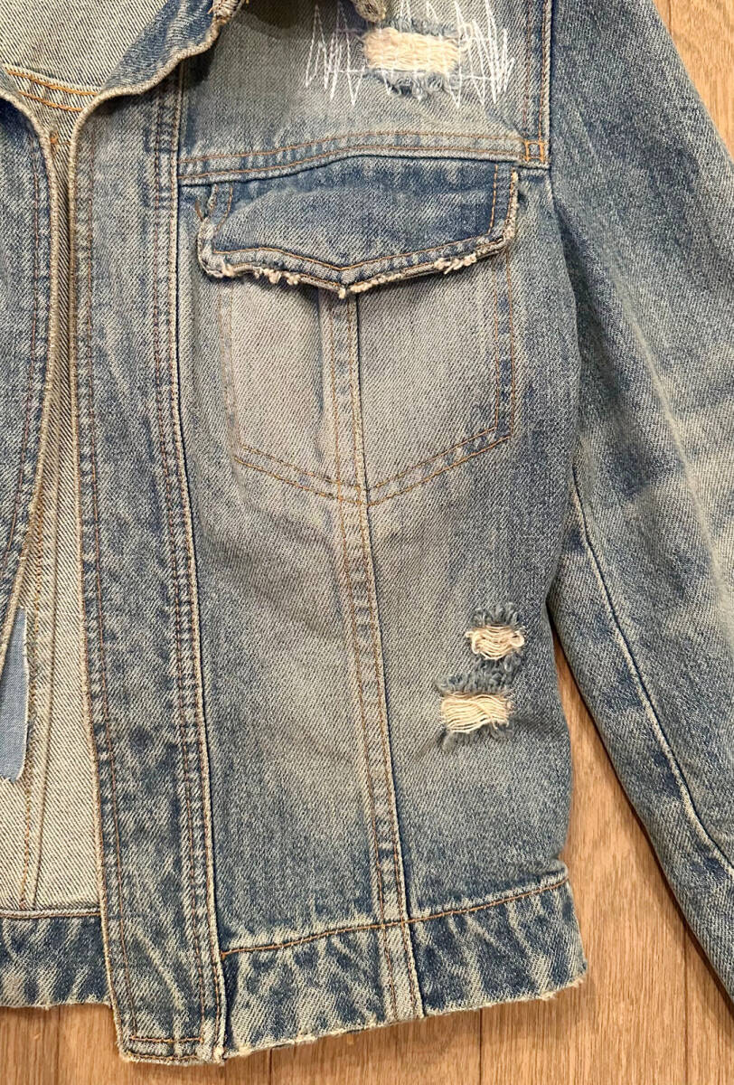 ●コンパクトなシルエットで、ダメージ加工とユーズド加工が施されています。