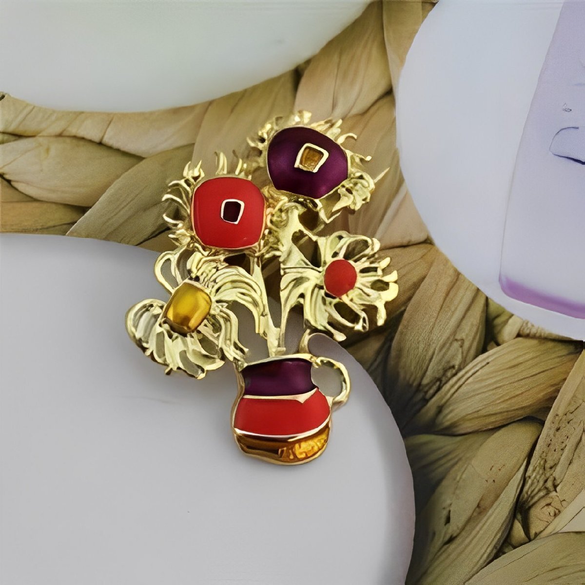 【お花】鉢植え ひまわり ペインティング ブローチ