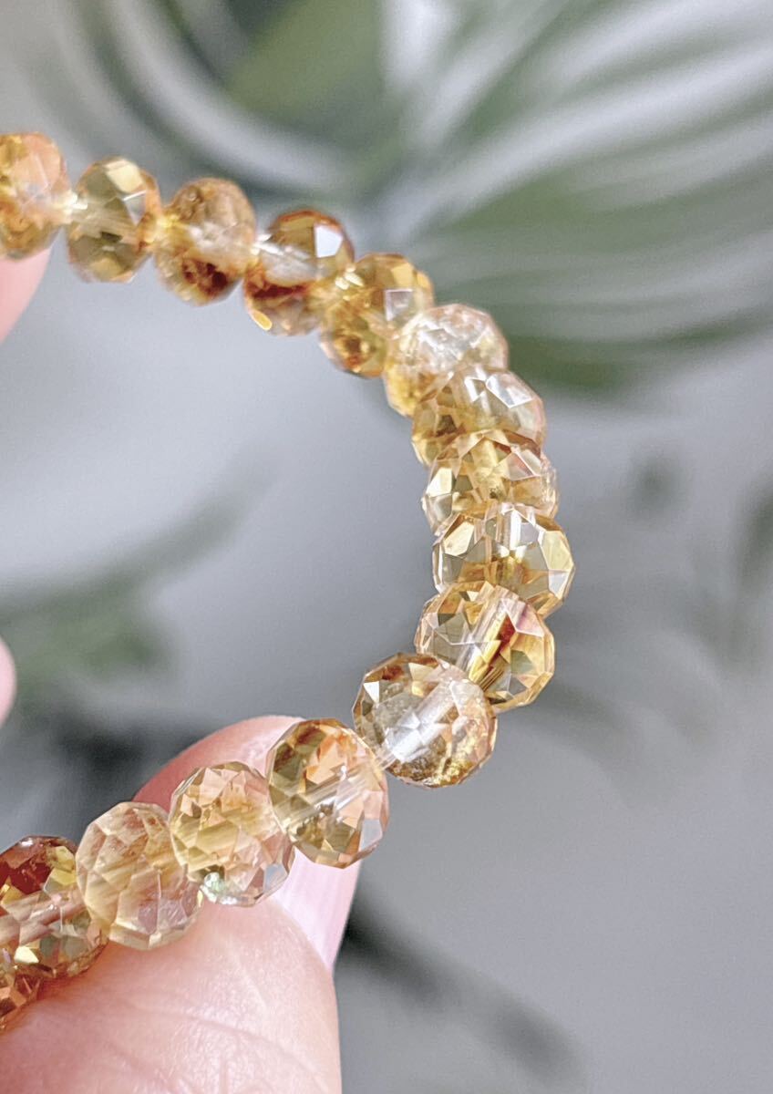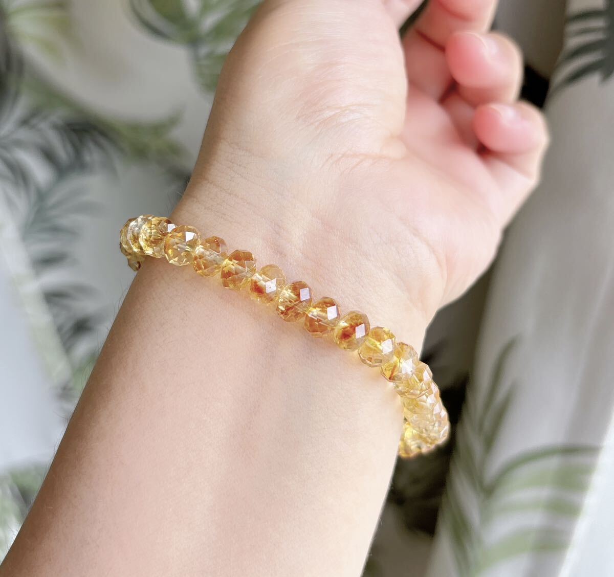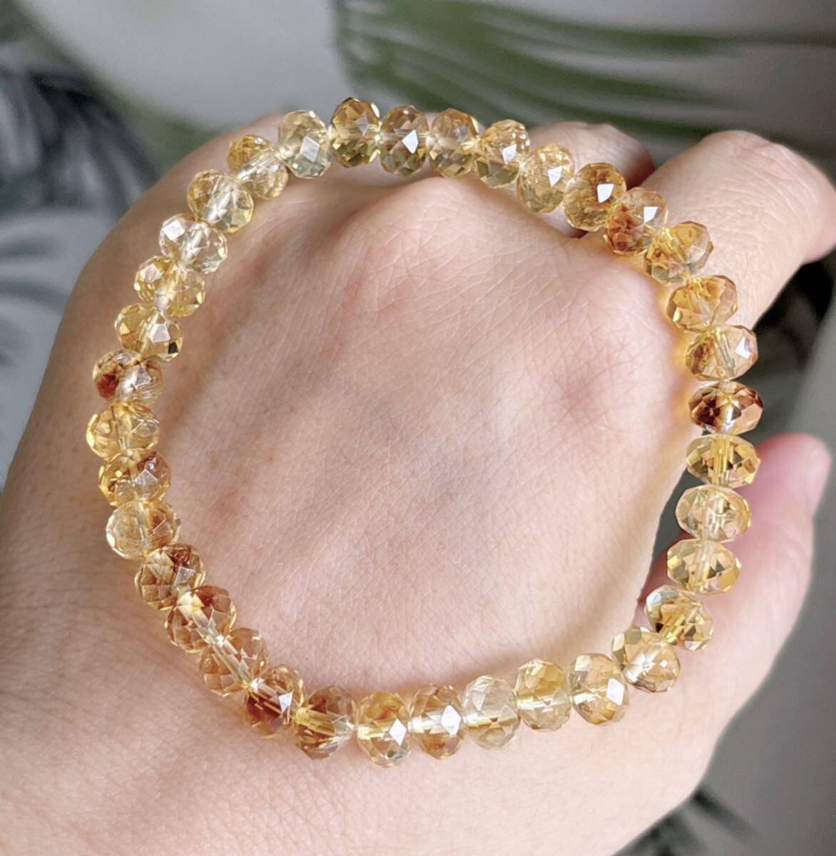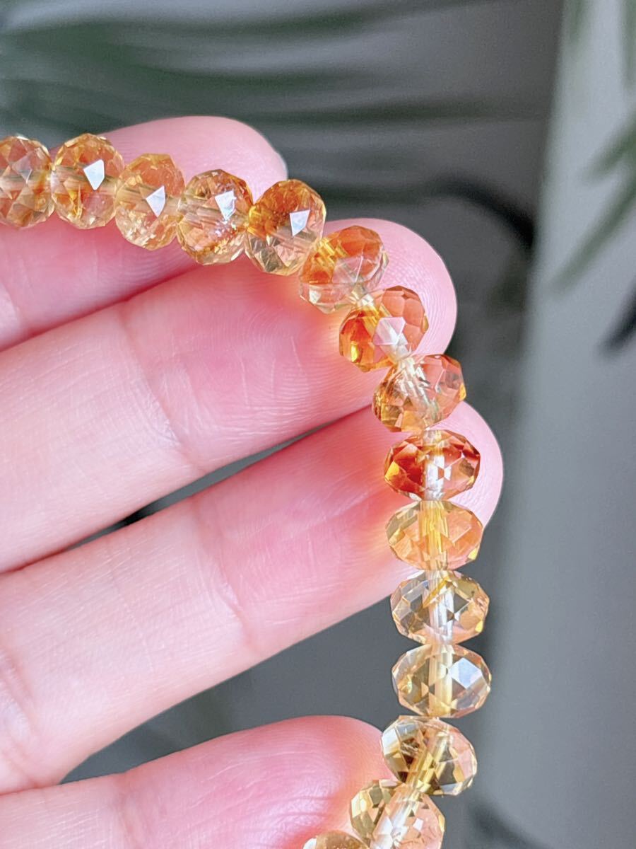 天然石 逸品シトリン(黄水晶)ブレスレットのサイズ約:5mm*7mm*36粒;