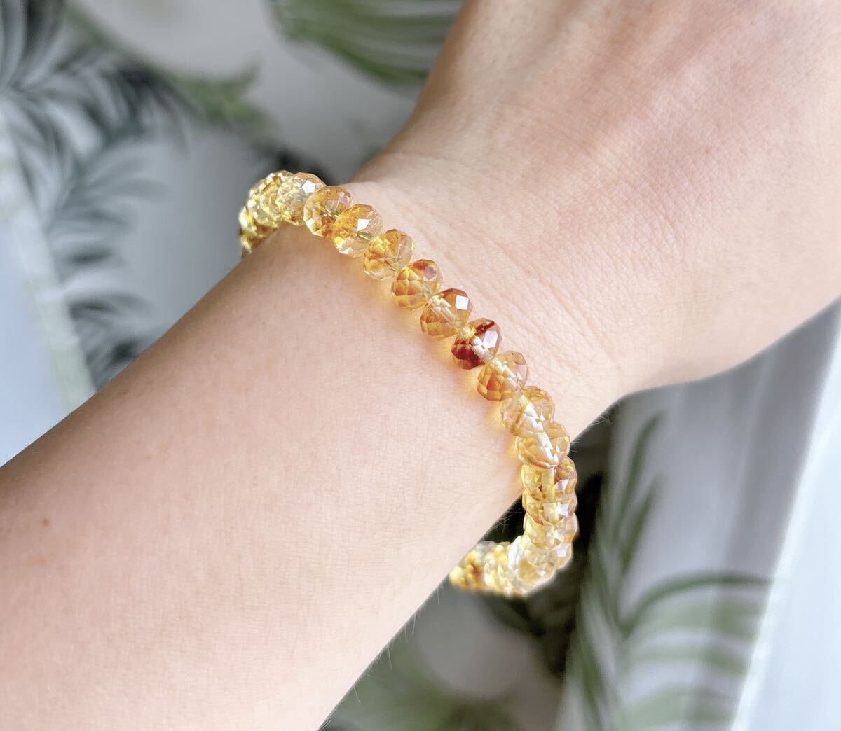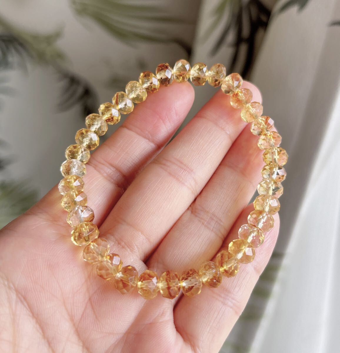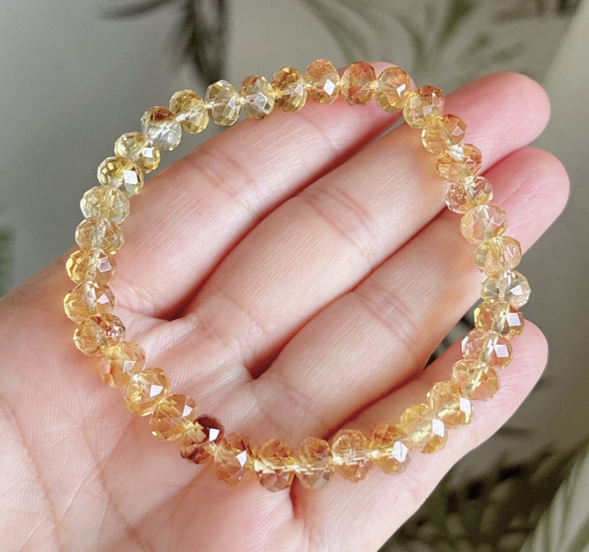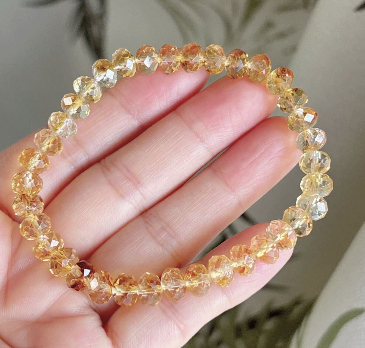 天然石 逸品シトリン(黄水晶)ブレスレットのサイズ約:5mm*7mm*36粒;