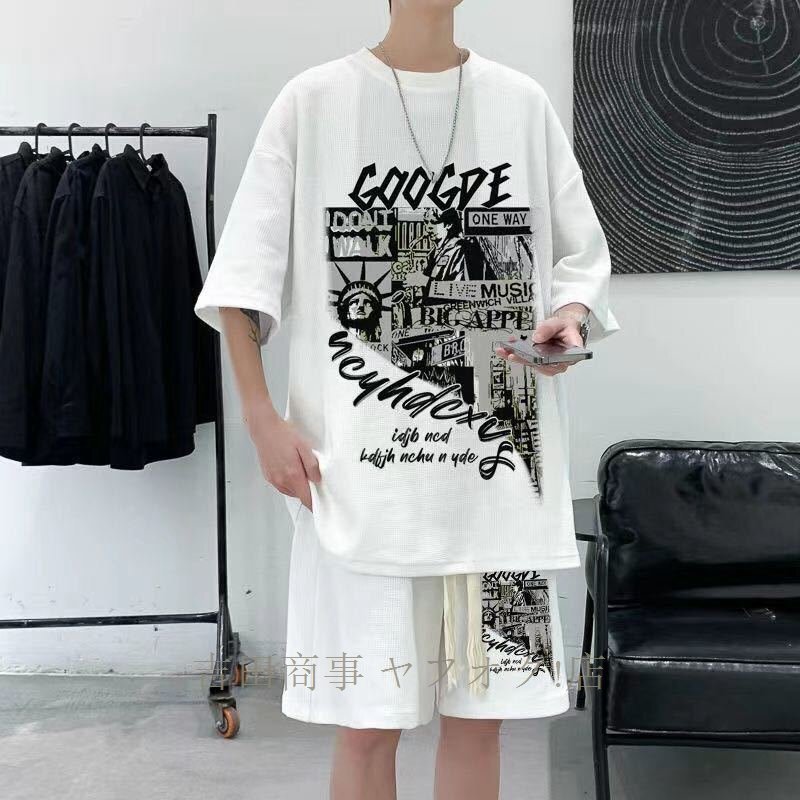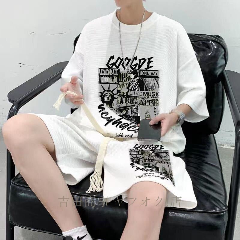 A8191☆新品メンズ 上下セット セットアップ トップス+短パン 2点セット 大きいサイズ 半袖 夏 ゆったり カジュアル