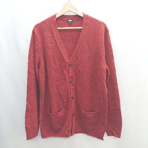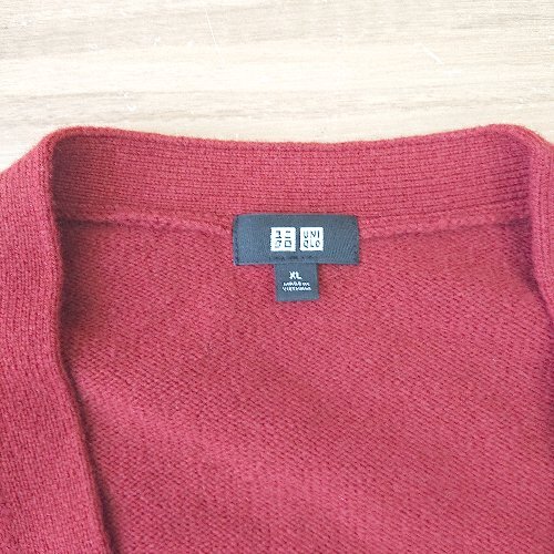 ◇ UNIQLO ユニクロ 毛100% シンプル カジュアル 長袖 ニット カーディガン サイズXL レッド メンズ E