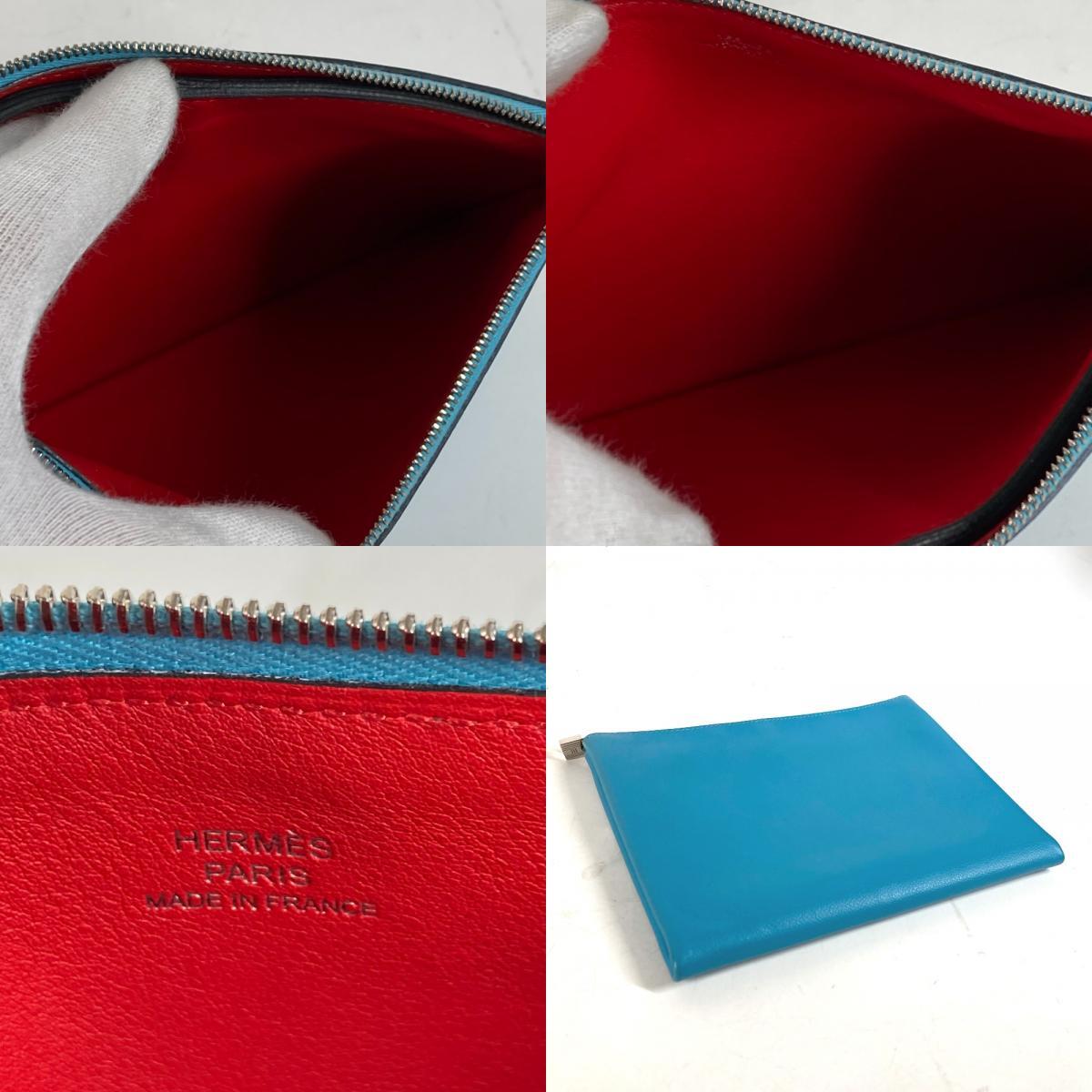 HERMES エルメス アトゥー GM 小物入れ マルチポーチ クラッチバッグ フラット ポーチ ブルーデュノール×ルージュドゥクール【中古】