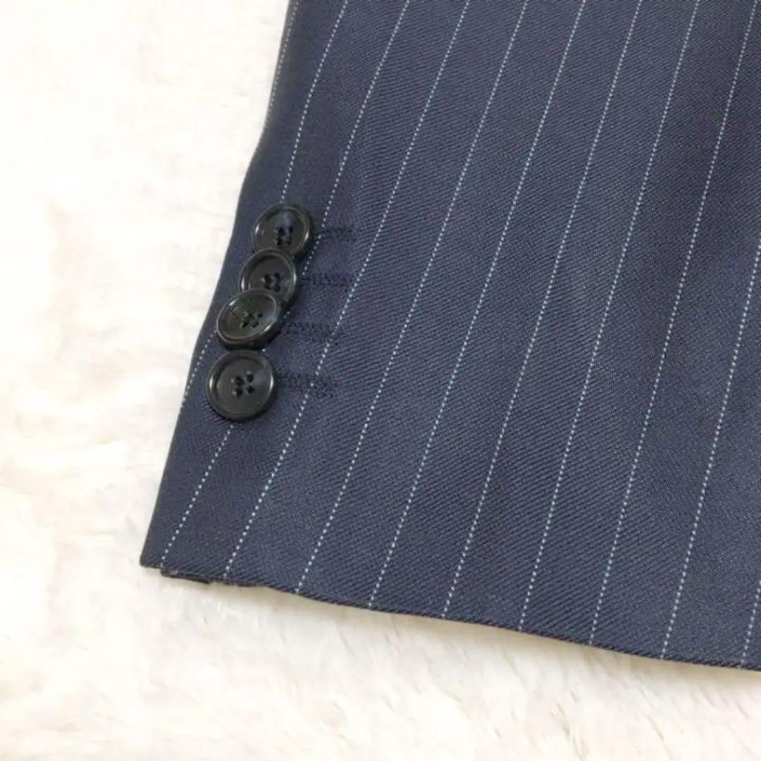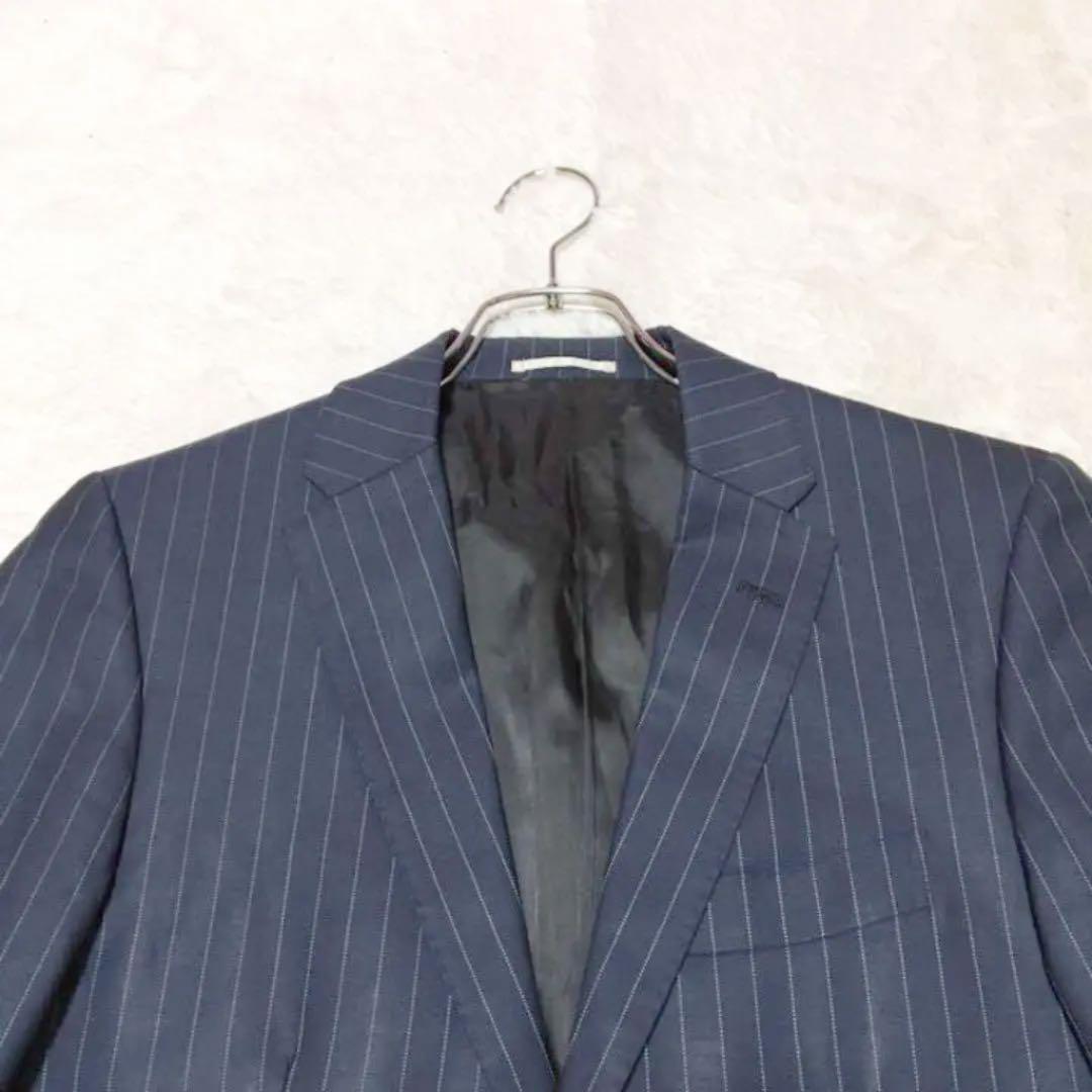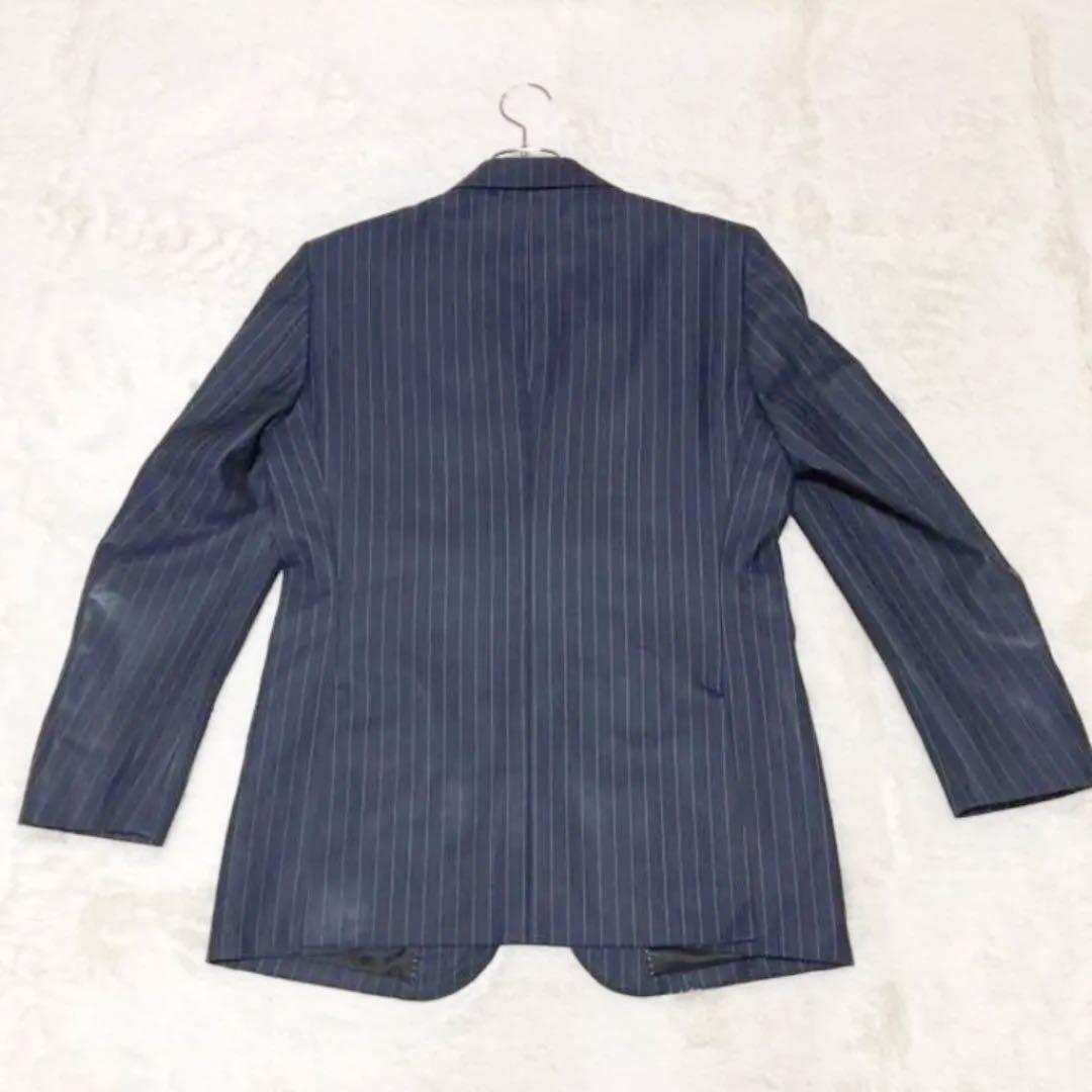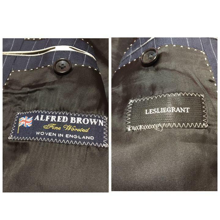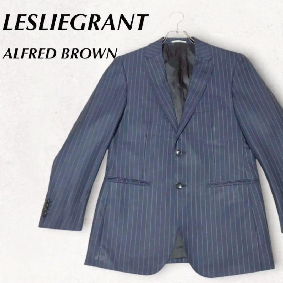 ru86 LESLIEGRANT × ALFRED BROWN メンズ テーラードジャケット ネイビー(紺)ストライプ ウール100% 2つボタン サイドベンツ