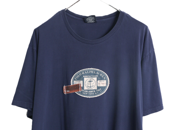 商品名 | 90s ポロ ラルフローレン ワッペン 刺繍 Tシャツ メンズ XL 90年代 オールド コットン カットソー 大きいサイズ 紺 クルーネック ネイビー |