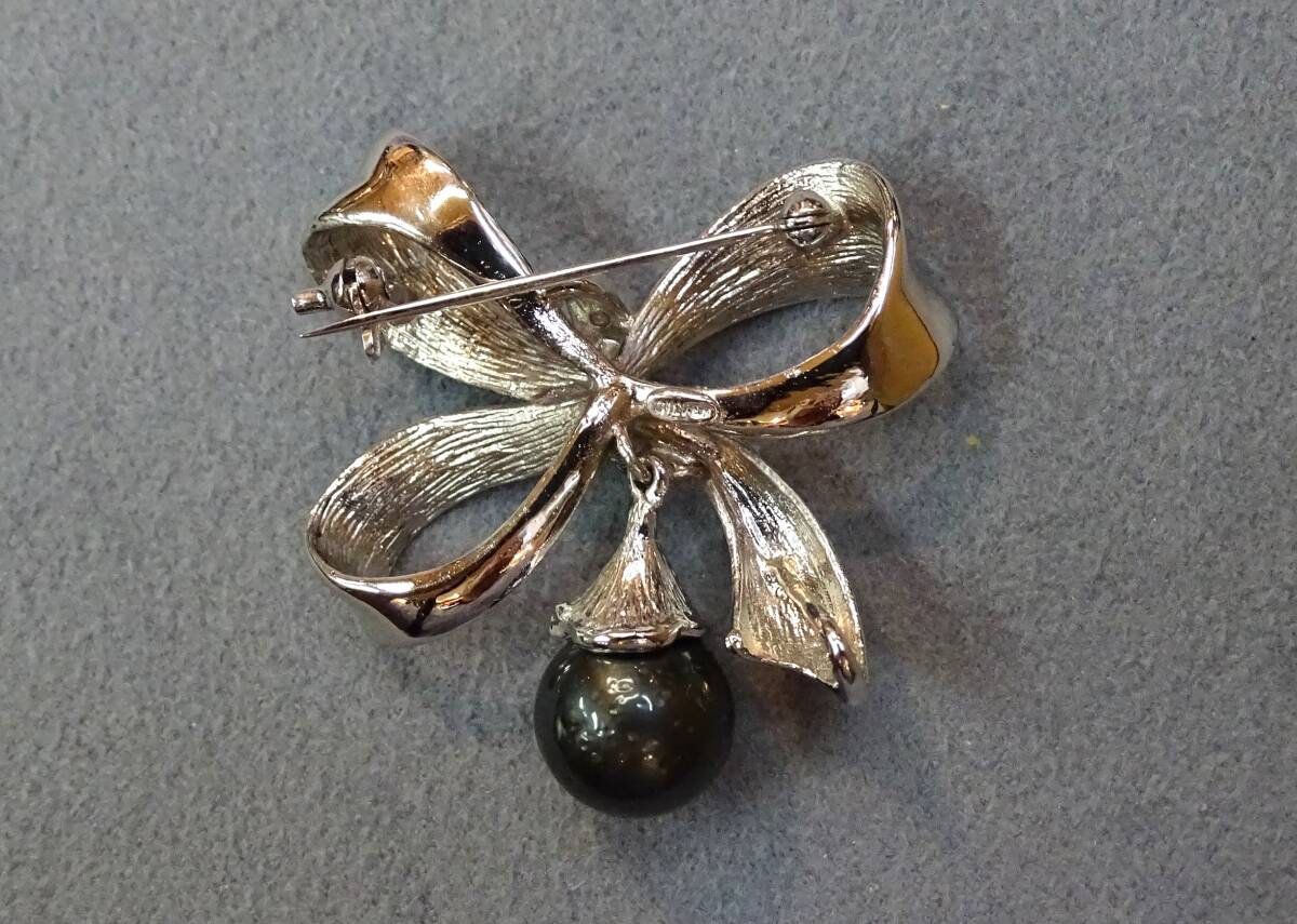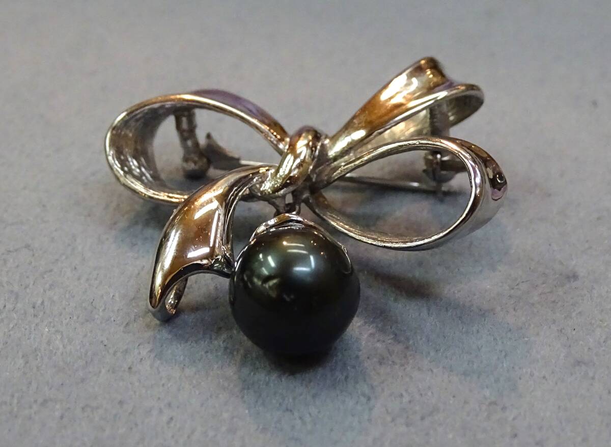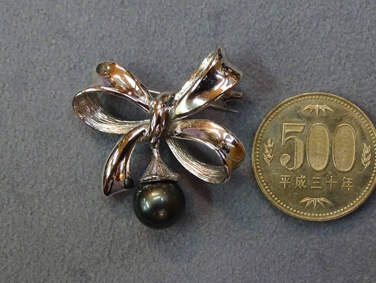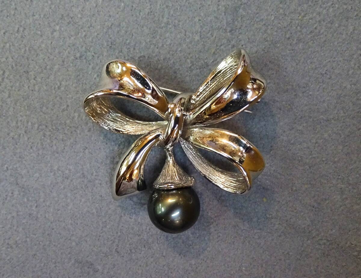 天然【黒蝶パール】ブローチ・リボン型・消費税・送料込み・ペンダント・シルバー・新品・未使用・本物