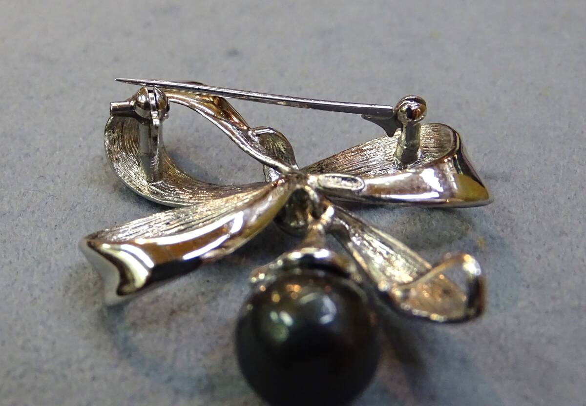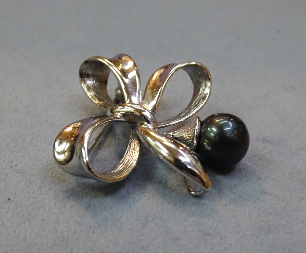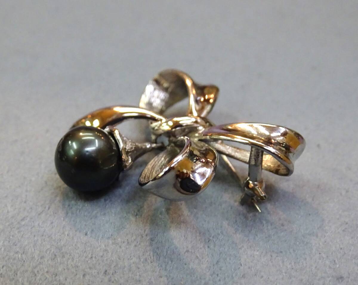 天然【黒蝶パール】ブローチ・リボン型・消費税・送料込み・ペンダント・シルバー・新品・未使用・本物