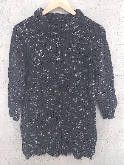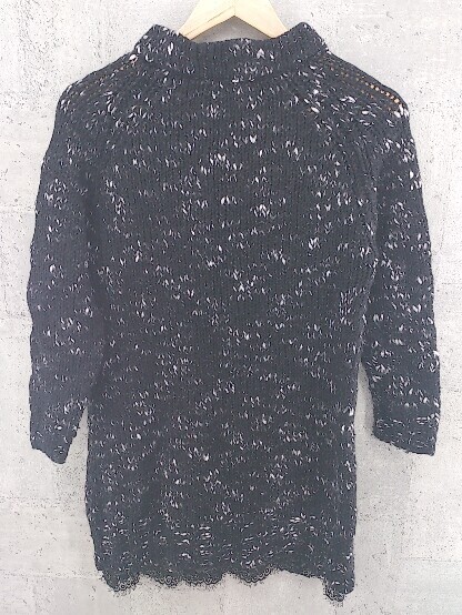 ◇ JILLSTUART ジル スチュアート レース ハイネック ウール 長袖 膝丈 ニット ワンピース 2 ブラック ホワイト レディース
