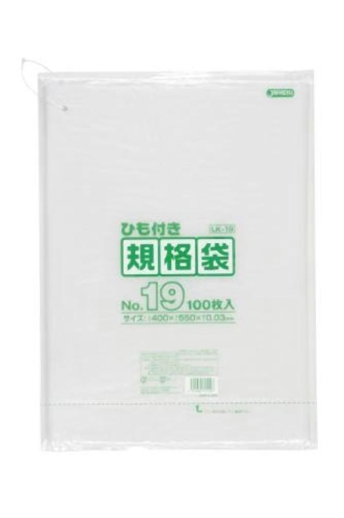 規格袋ひも付 19号100枚入03LLD透明 LK19 まとめ買い 15袋×5ケース 合計75袋セット 38-476