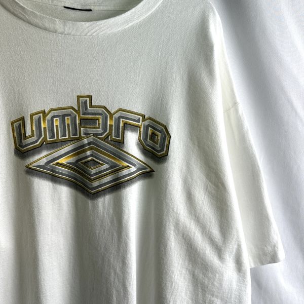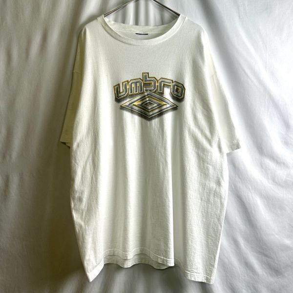 90s UMBRO プリント Tシャツ XL-XXL ビッグサイズ ホワイト 白 シングルステッチ ロゴ アンブロ 80s 00s 古着 オールド ビンテージ
